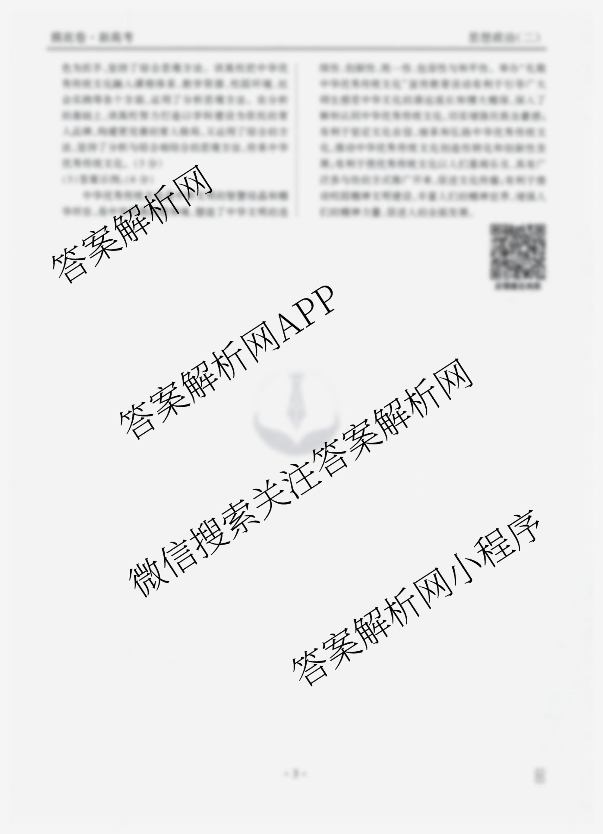 - 2024-2025(高三)[衡水金卷先享题]·摸底卷 学年度一轮复习摸底测试卷(二)2政治(MH)答案