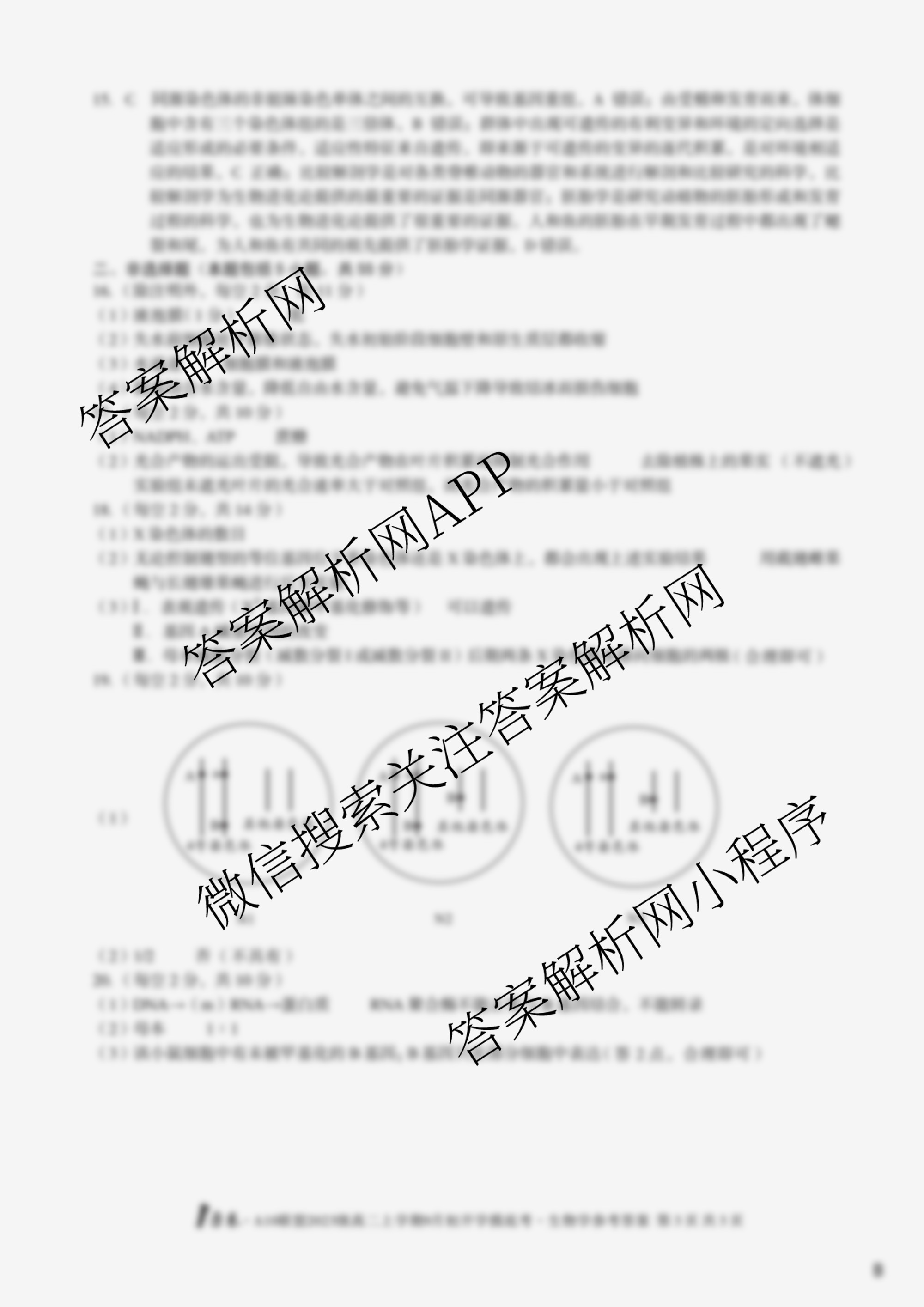 - [1号卷]·A10联盟2023级(高二)上学期9月初开学摸底考生物答案