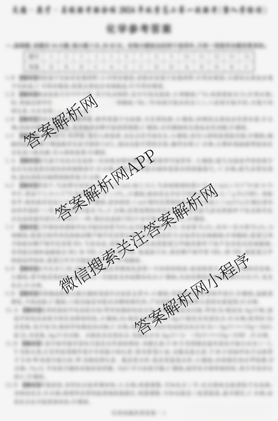 - 炎德英才名校联考联合体2024年秋季高二第一次联考(暨入学检测)化学答案