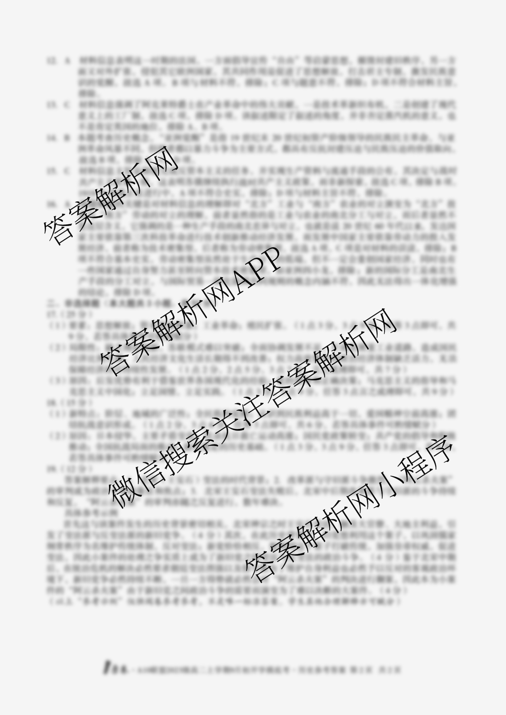 - 高二[1号卷]A10联盟2023级上学期9月初开学摸底考历史答案