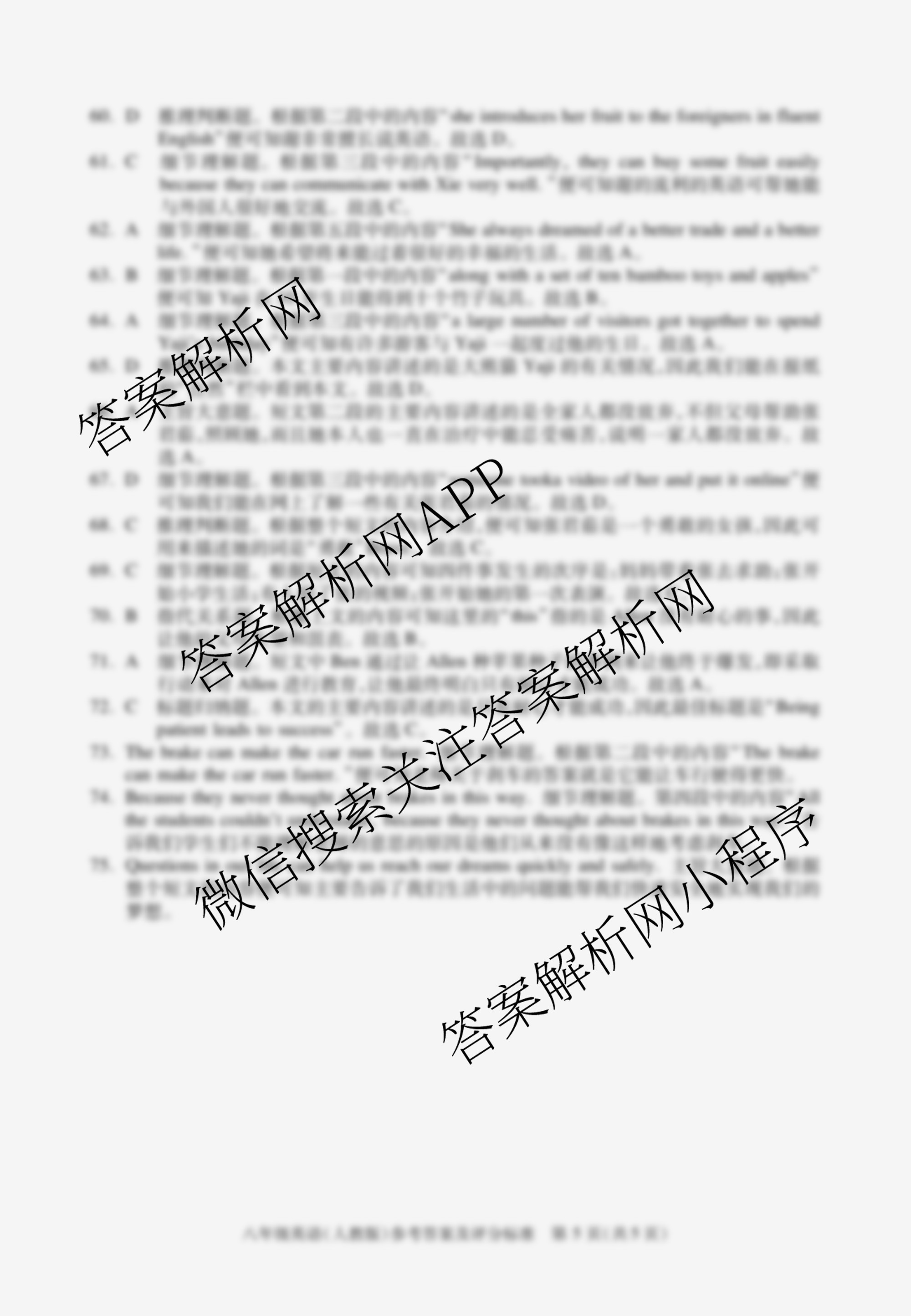 - [八年级]安徽省2023-2024学年下学期期末教学质量调研英语(人教版)答案