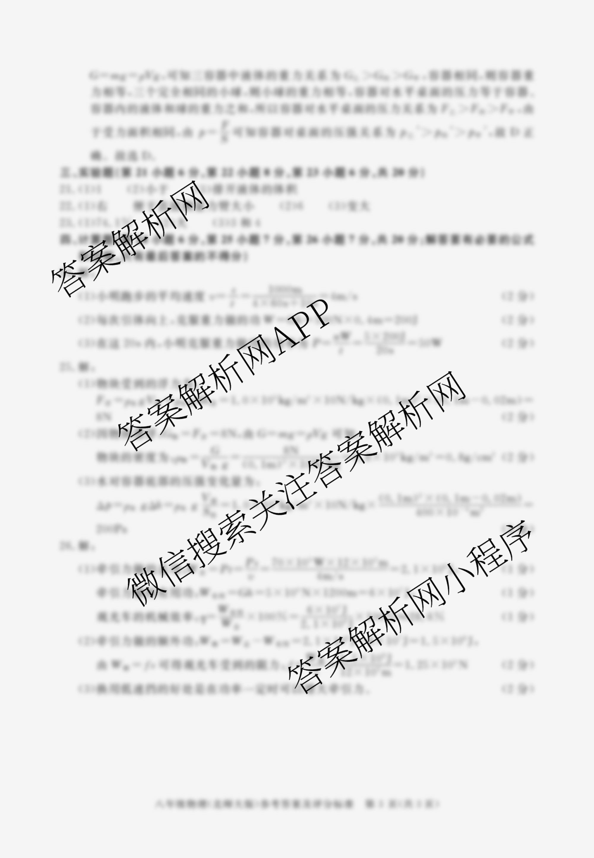 - 2023~2024八年级安徽省学年下学期期末教学质量调研物理(北师大版)答案