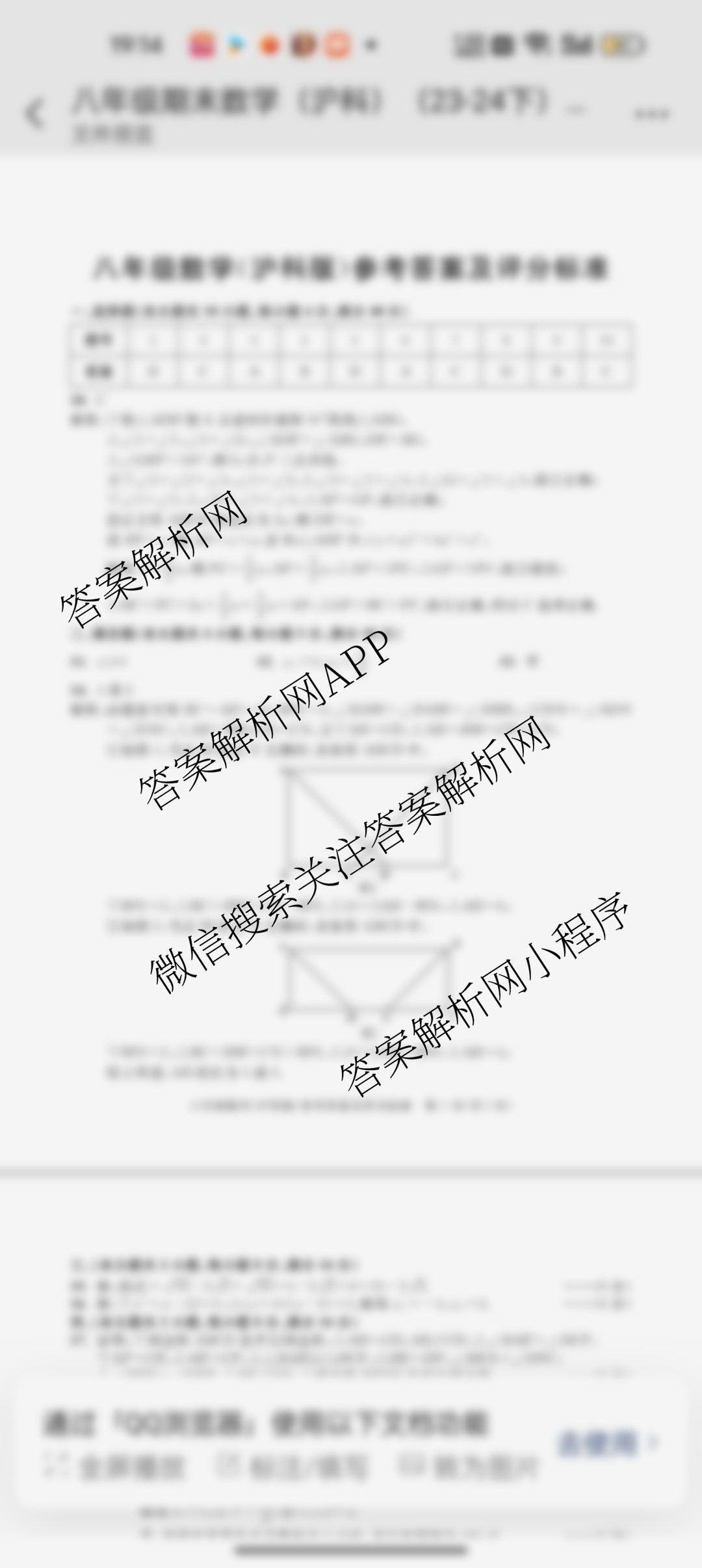 - [八年级]安徽省2023-2024学年下学期期末教学质量调研数学(沪科版)答案