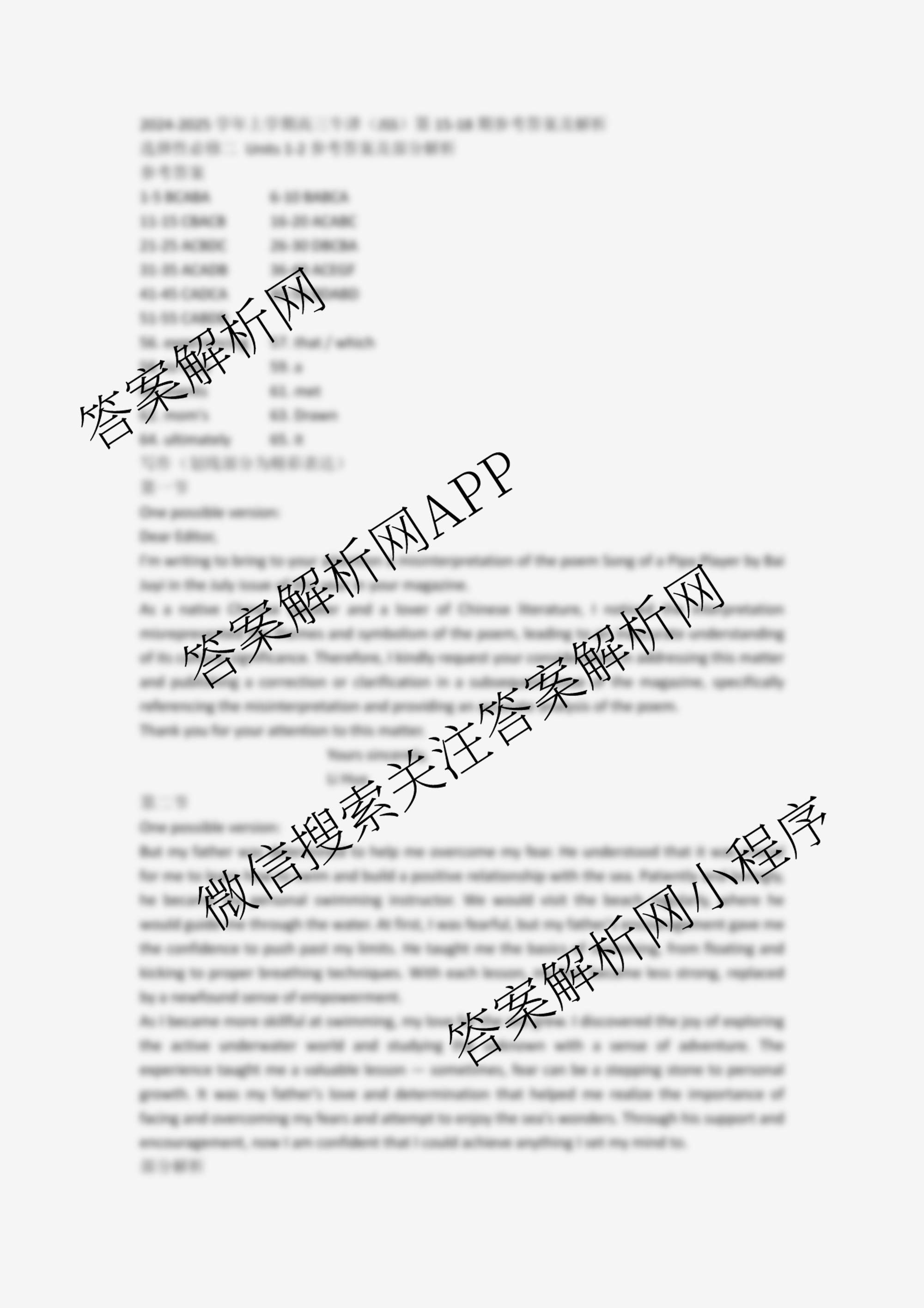 2024-2025 英语周报 高三 牛津(JSS)第15期答案