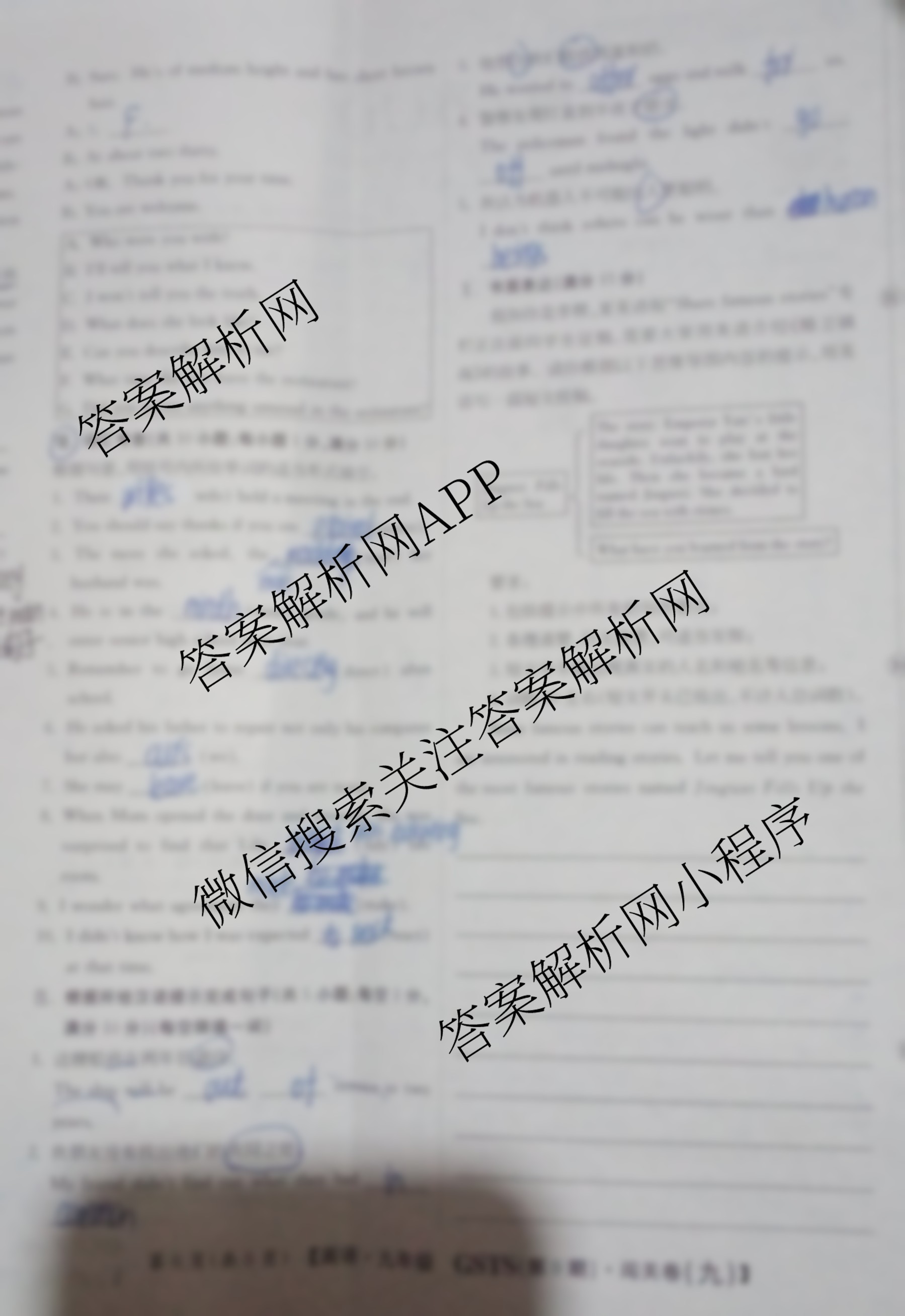 2024-2025 闯关卷 九年级 英语(GSTS)(九)9试题,目前学英语报答案已经汇总了2024-2025 闯关卷 九年级 英语(GSTS)(九)9试题的各科答案和试卷,获取更多闯关卷答案解析,请在关注本站。
