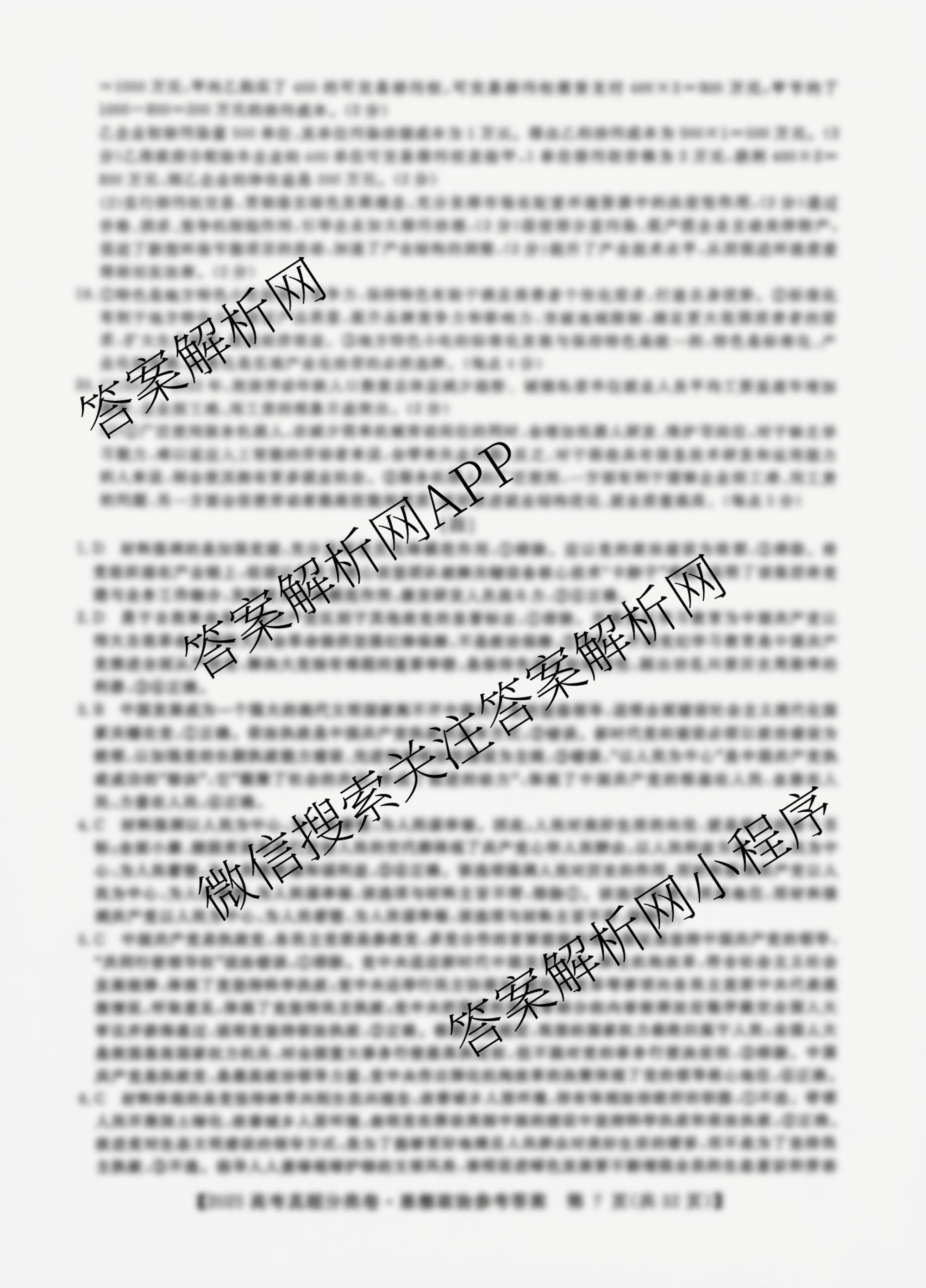 2025届最新五年高考真题分类优化卷政治(三)3答案