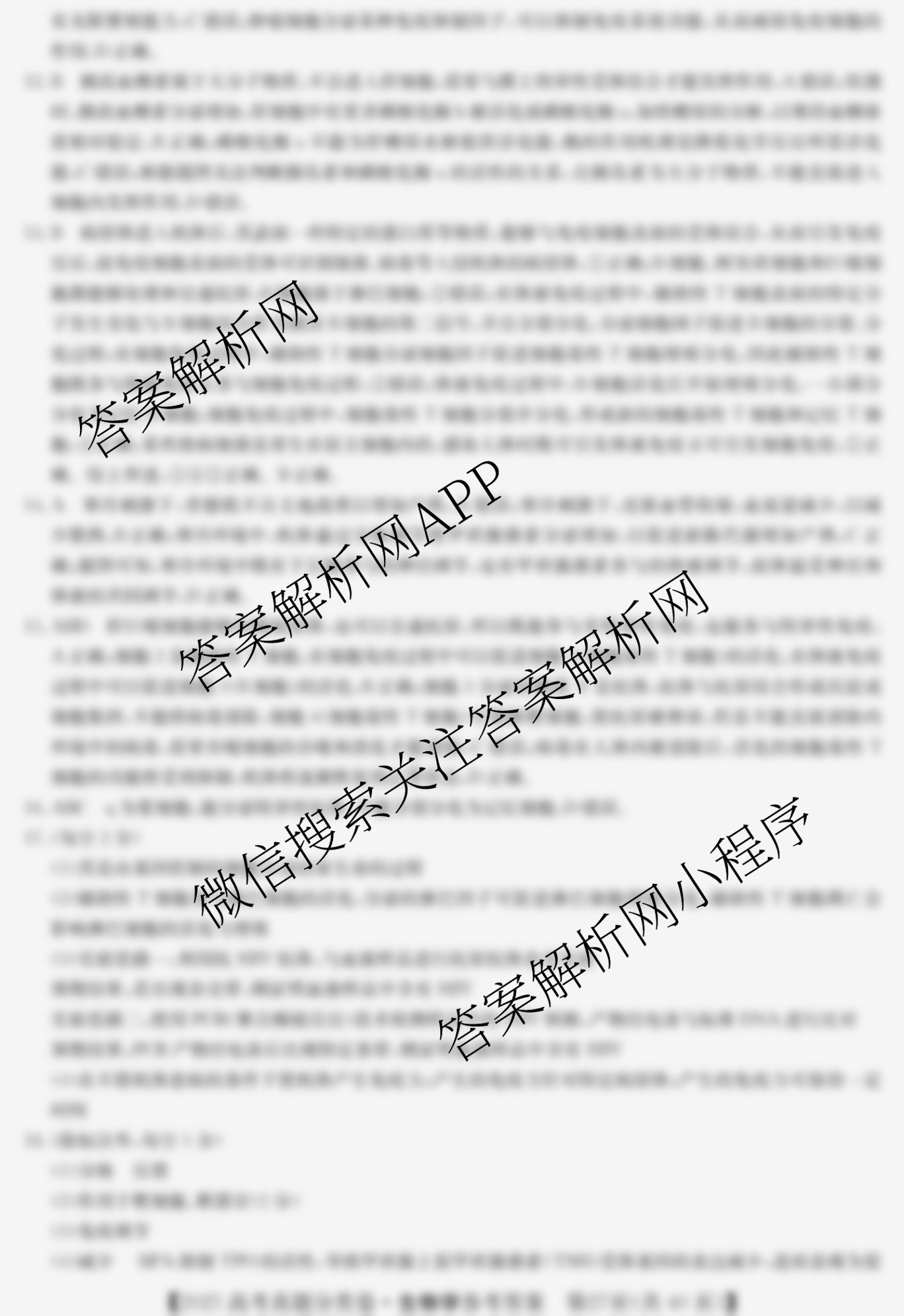 2025届最新五年高考真题分类优化卷生物(十)10答案