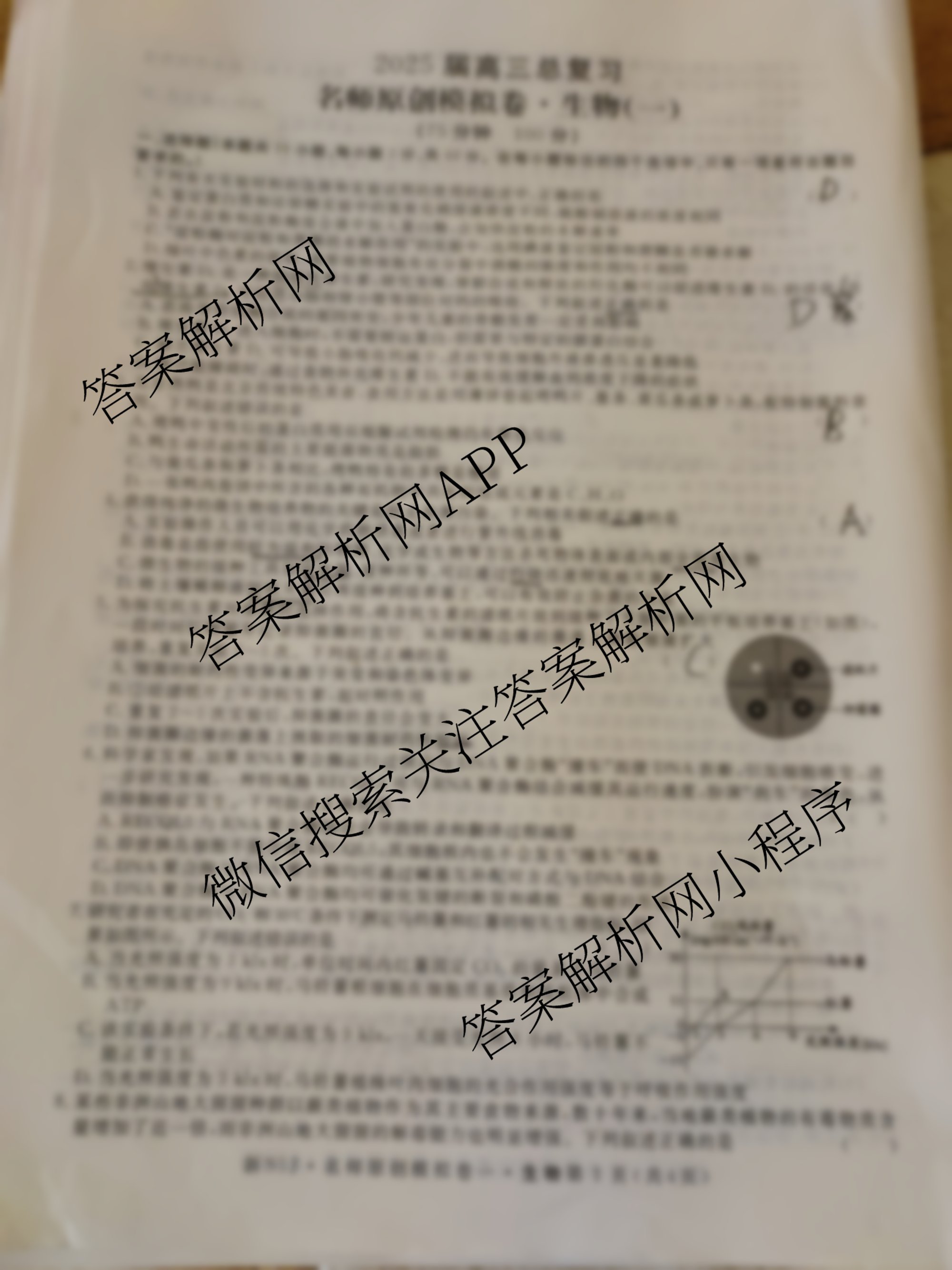 2025届高三总复习·名师原创模拟 生物(新S5J)(一)1试题,目前学英语报答案已经汇总了2025届高三总复习·名师原创模拟 生物(新S5J)(一)1试题的各科答案和试卷,获取更多高三总复习·名师原创模拟答案解析,请在关注本站。