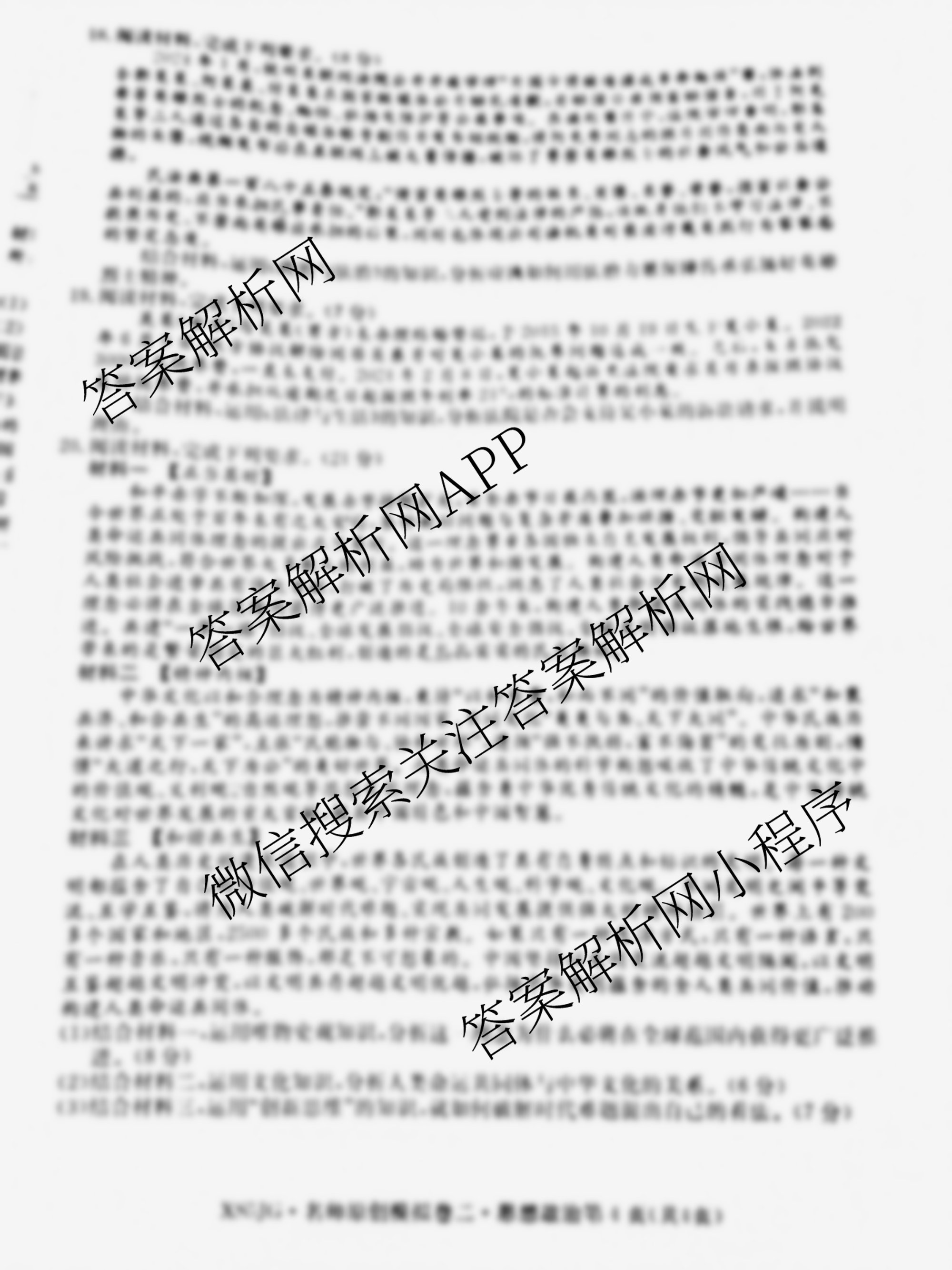 - (高三)2025届(总复习名师原创模拟)(二)2政治(XS5)答案