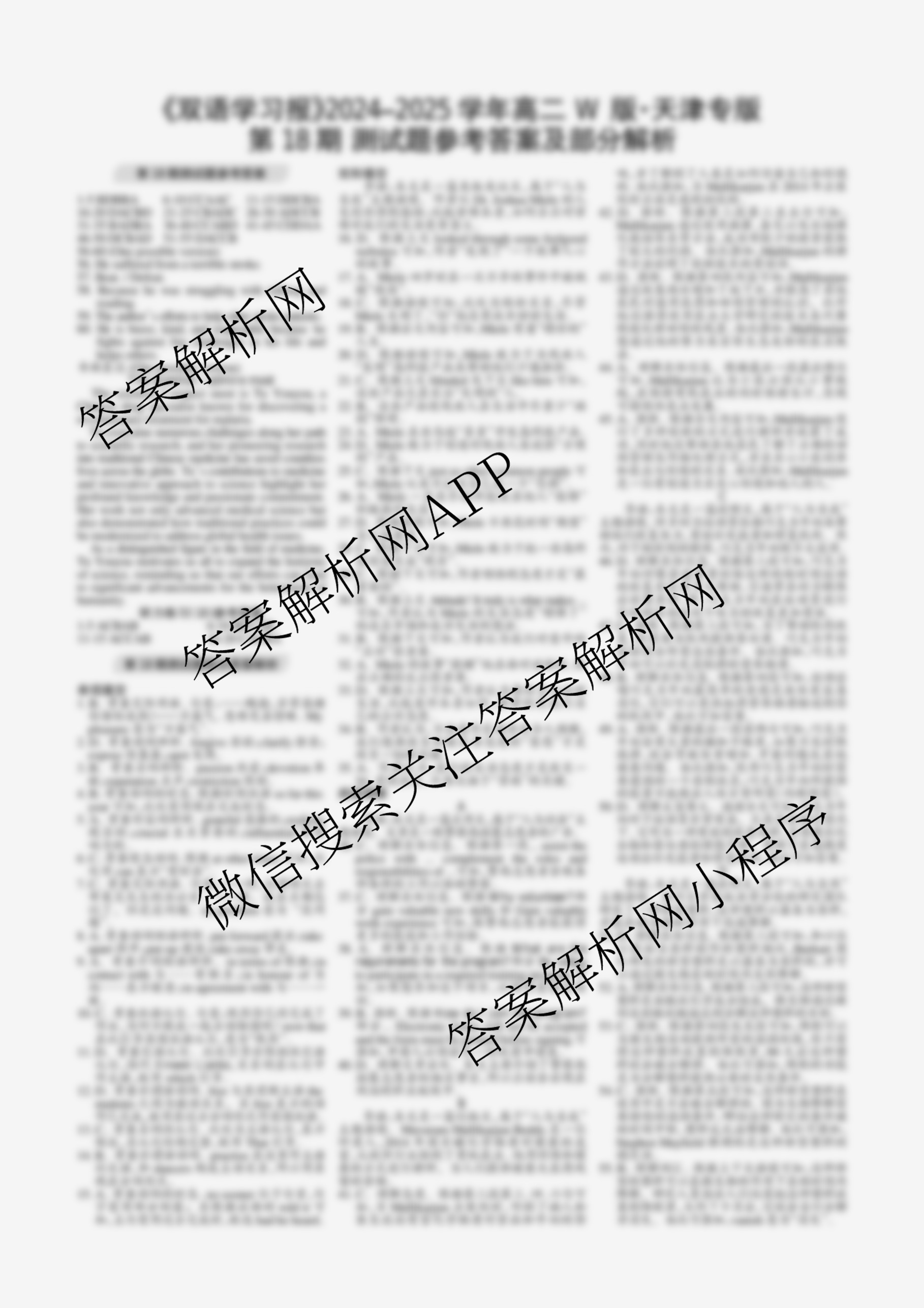 2024-2025 双语学习报 高二 W版天津专版第18期答案