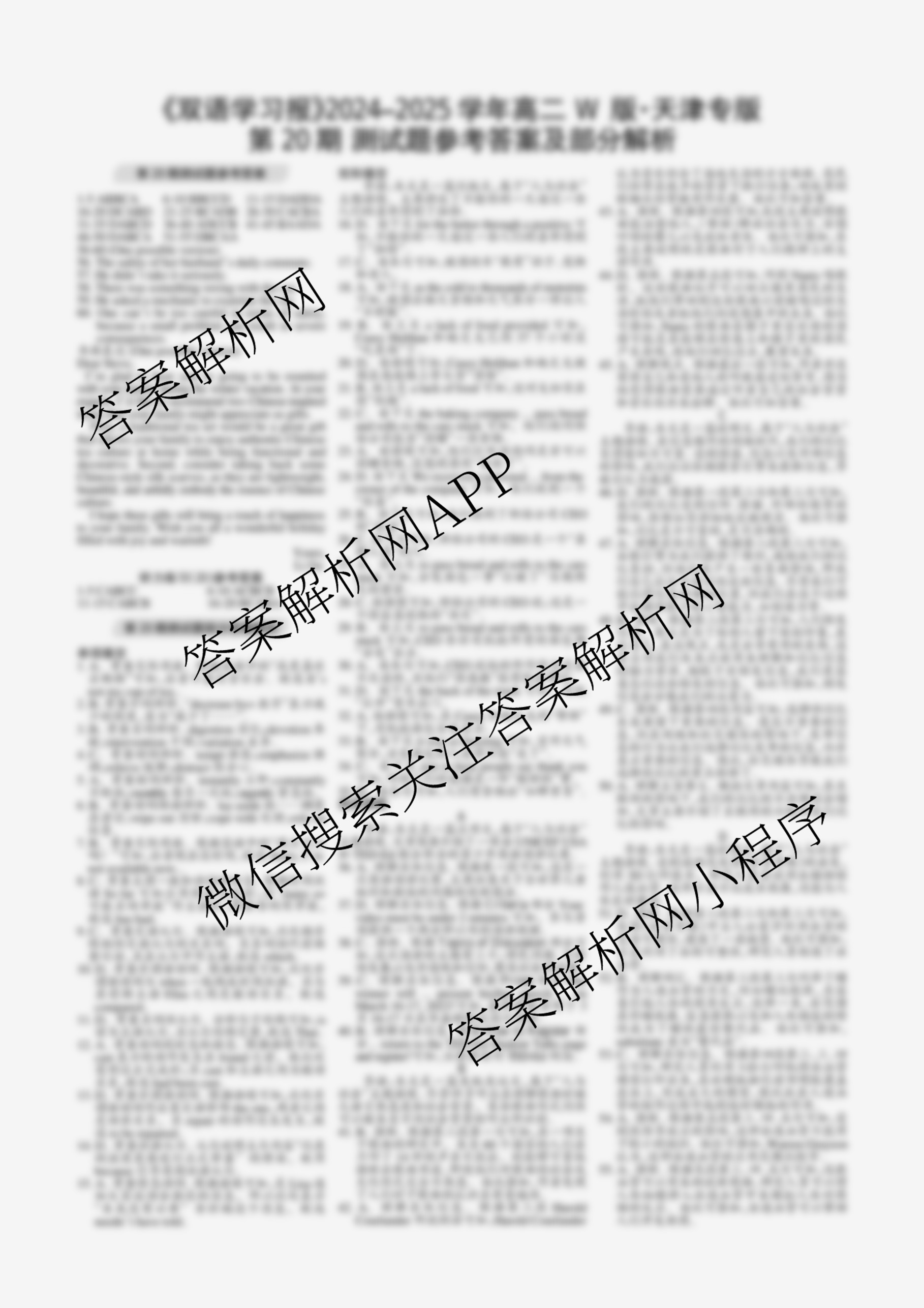 2024-2025 双语学习报 高二 W版天津专版第20期答案