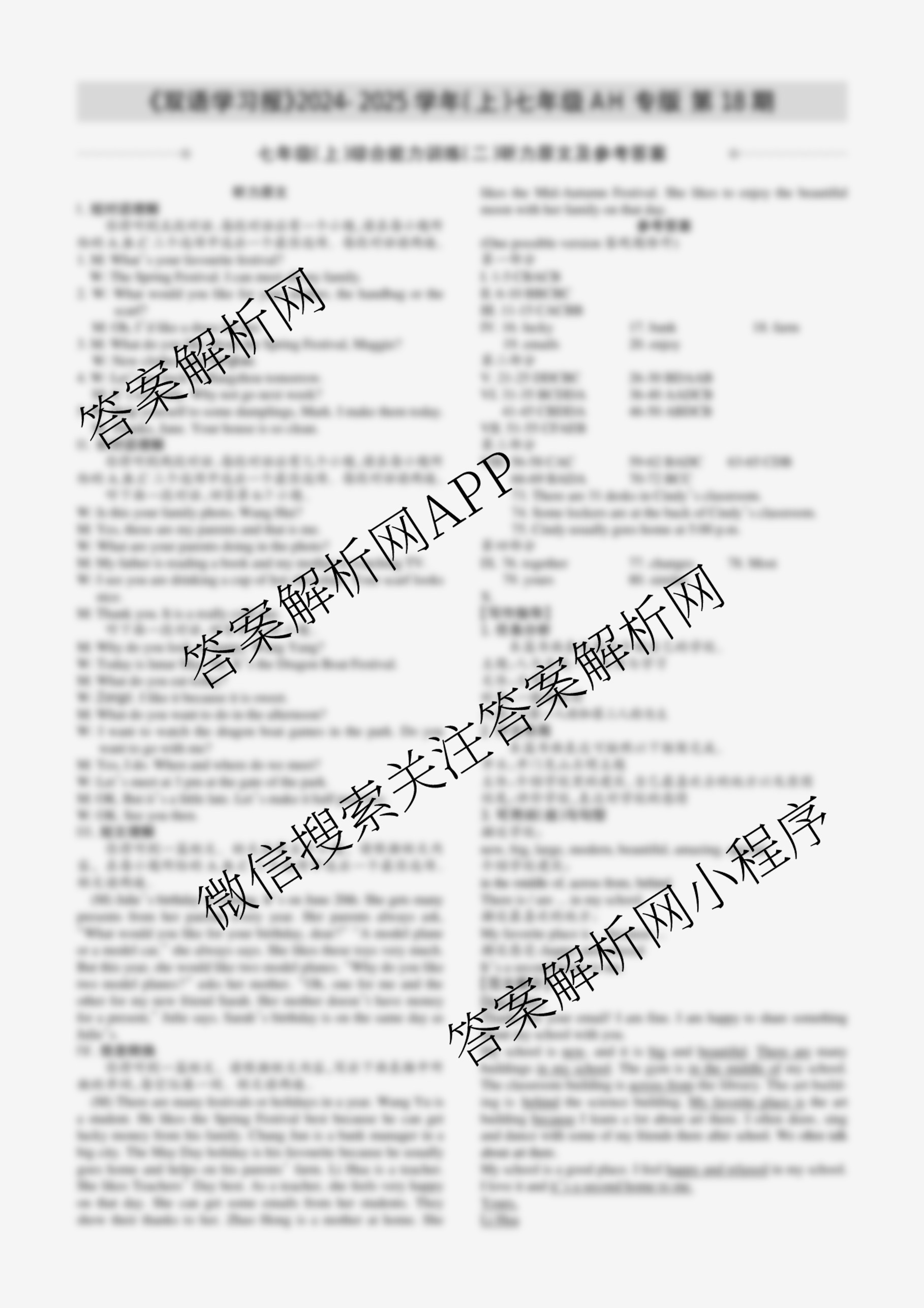 2024-2025 双语学习报 七年级 N版AH专版第18期答案