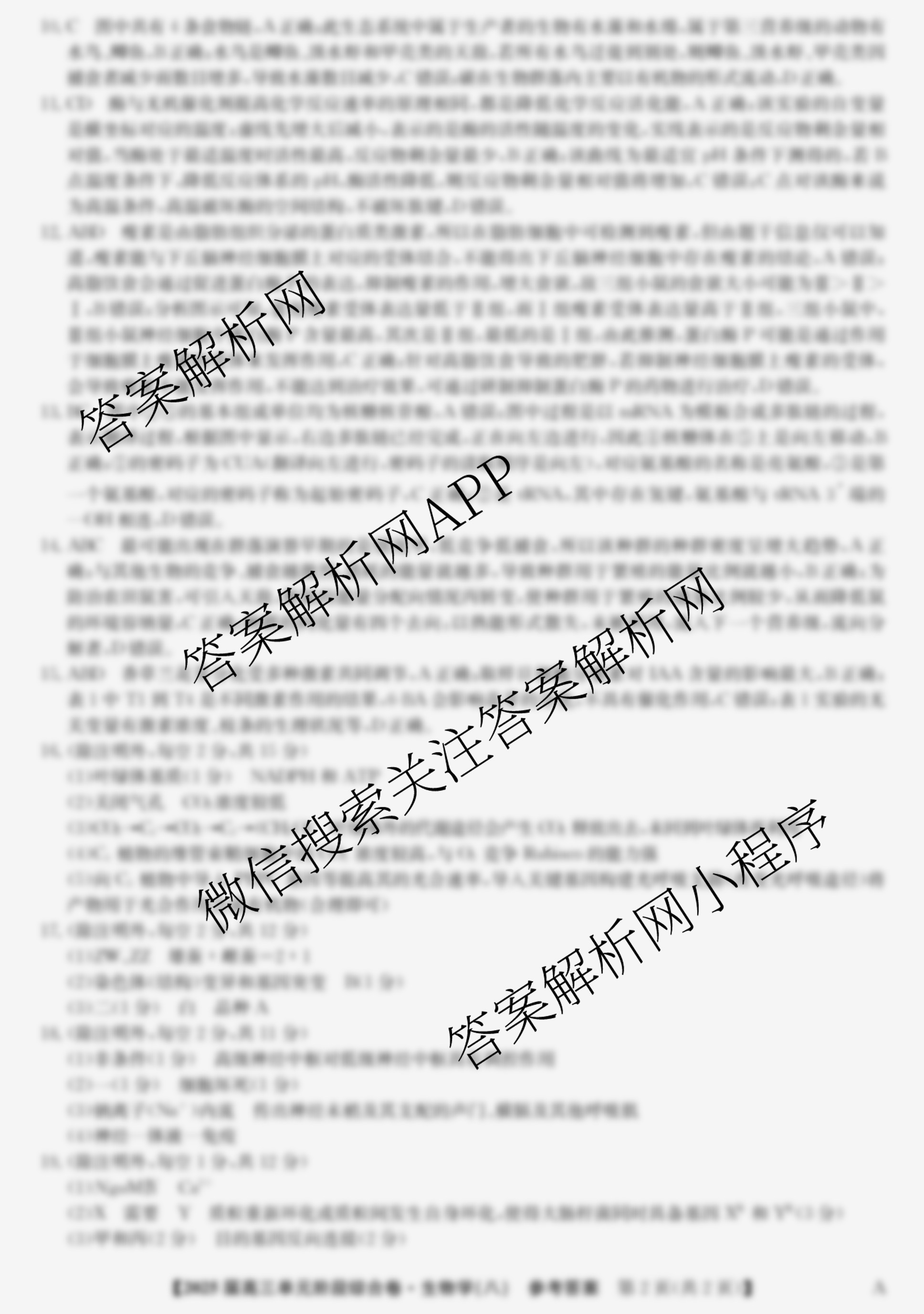 2025届高三九师联盟单元阶段综合卷(八)8生物答案