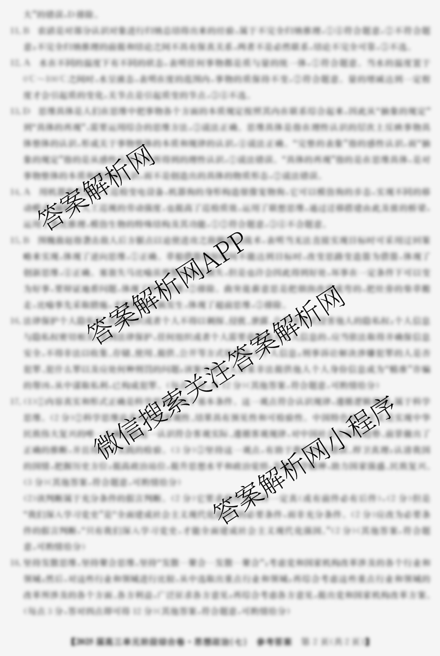 - 2025届(高三)(九师联盟)·单元阶段综合卷(七)7政治答案