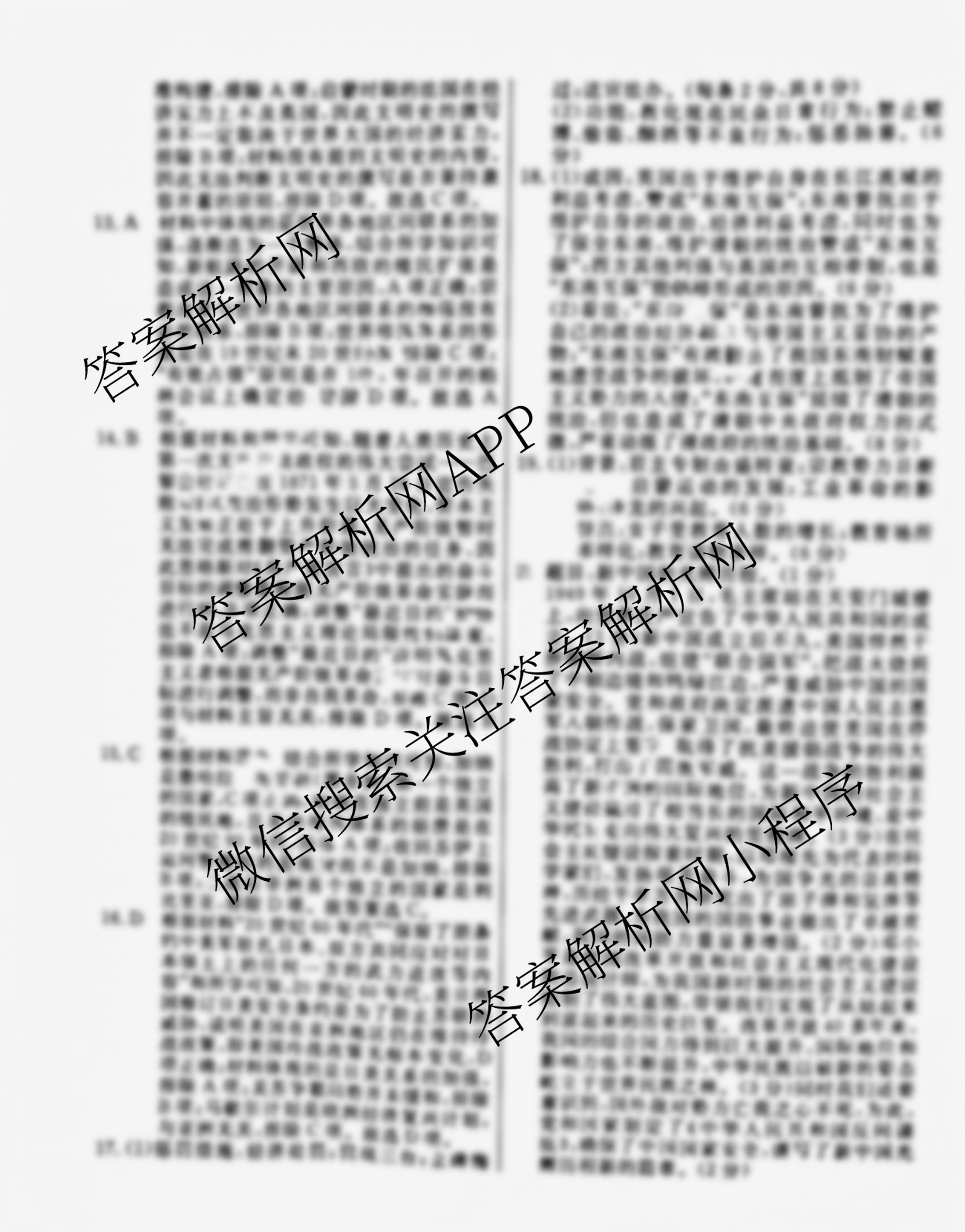 - 高三2025届(总复习名师原创模拟)(十二)12历史(XS5)答案