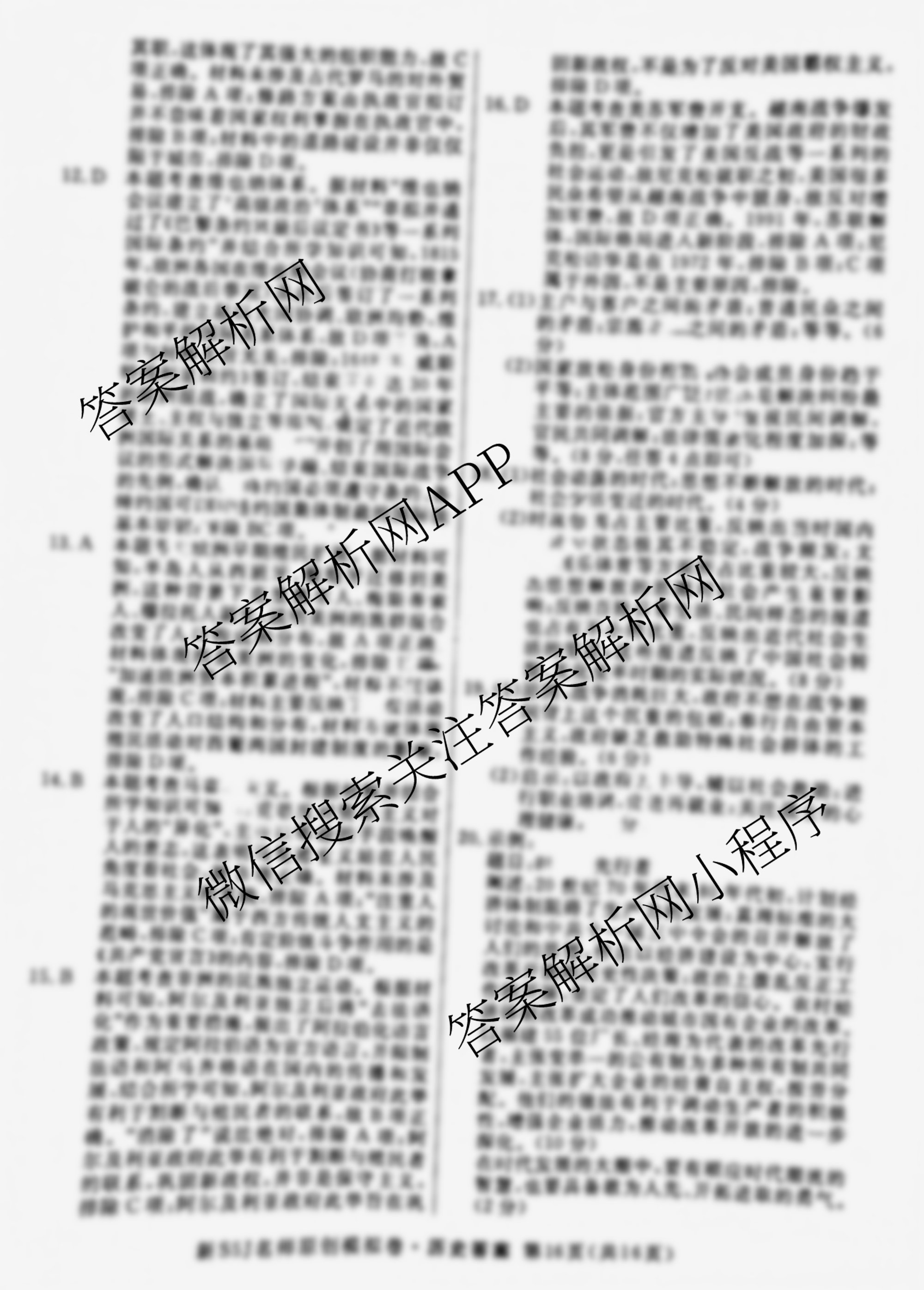 - 2025届高三(总复习名师原创模拟)(六)6历史(XS5J)答案