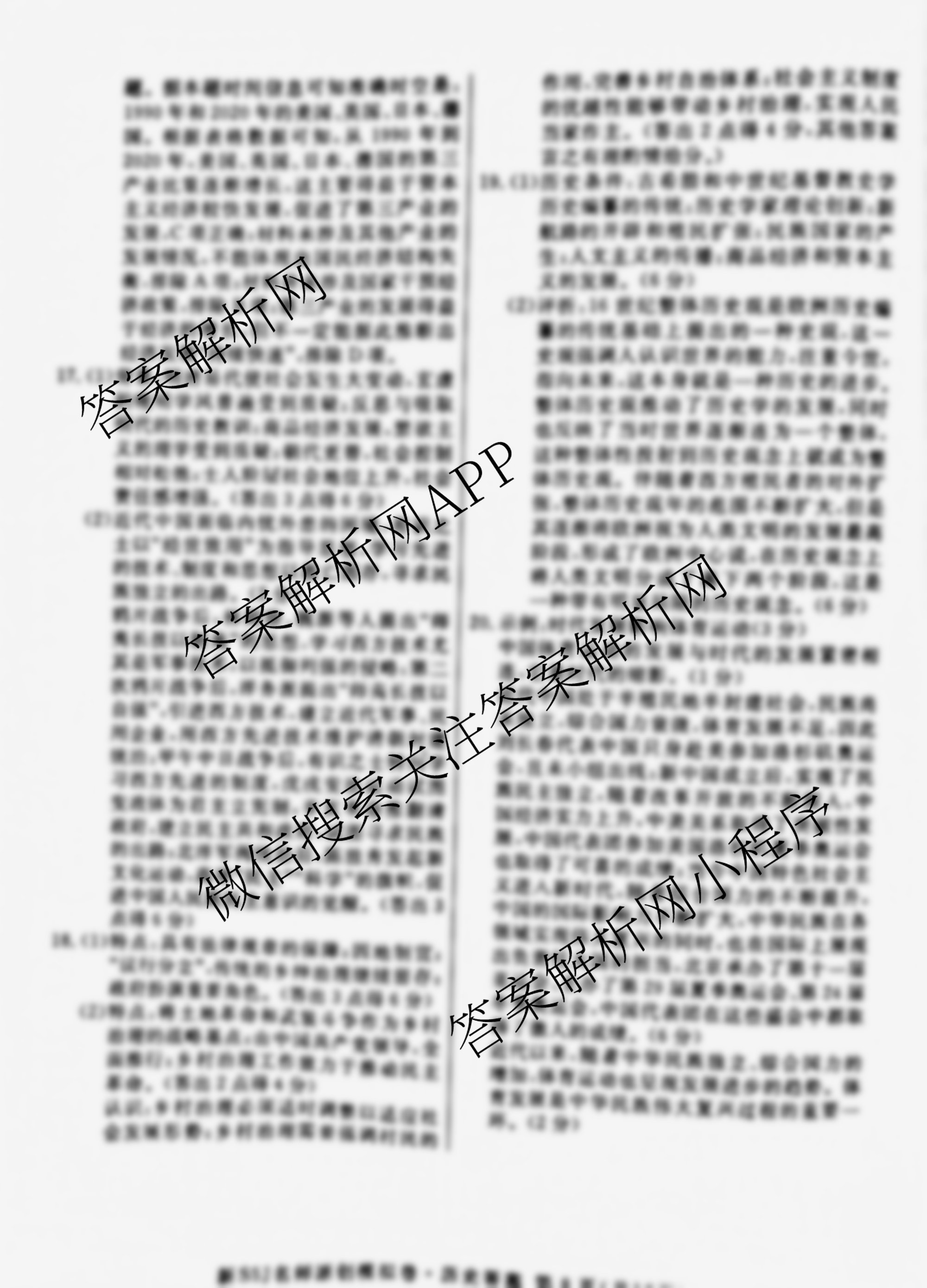 - 2025届(高三)(总复习名师原创模拟)(九)9历史(XS5J)答案