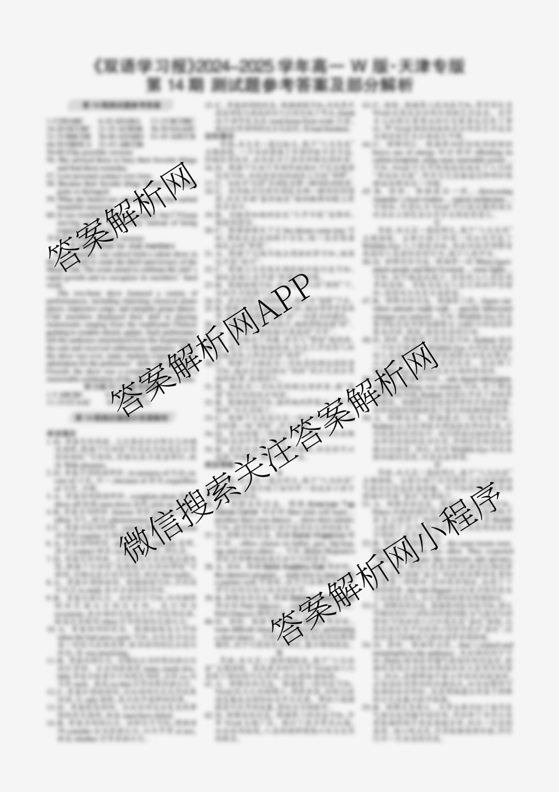 2024-2025 双语学习报 高一 W版·新教材天津专版第14期答案,目前学英语报答案已经汇总了2024-2025 双语学习报 高一 W版·新教材天津专版第14期答案的各科答案和试卷,获取更多学生双语报答案解析,请在关注本站。