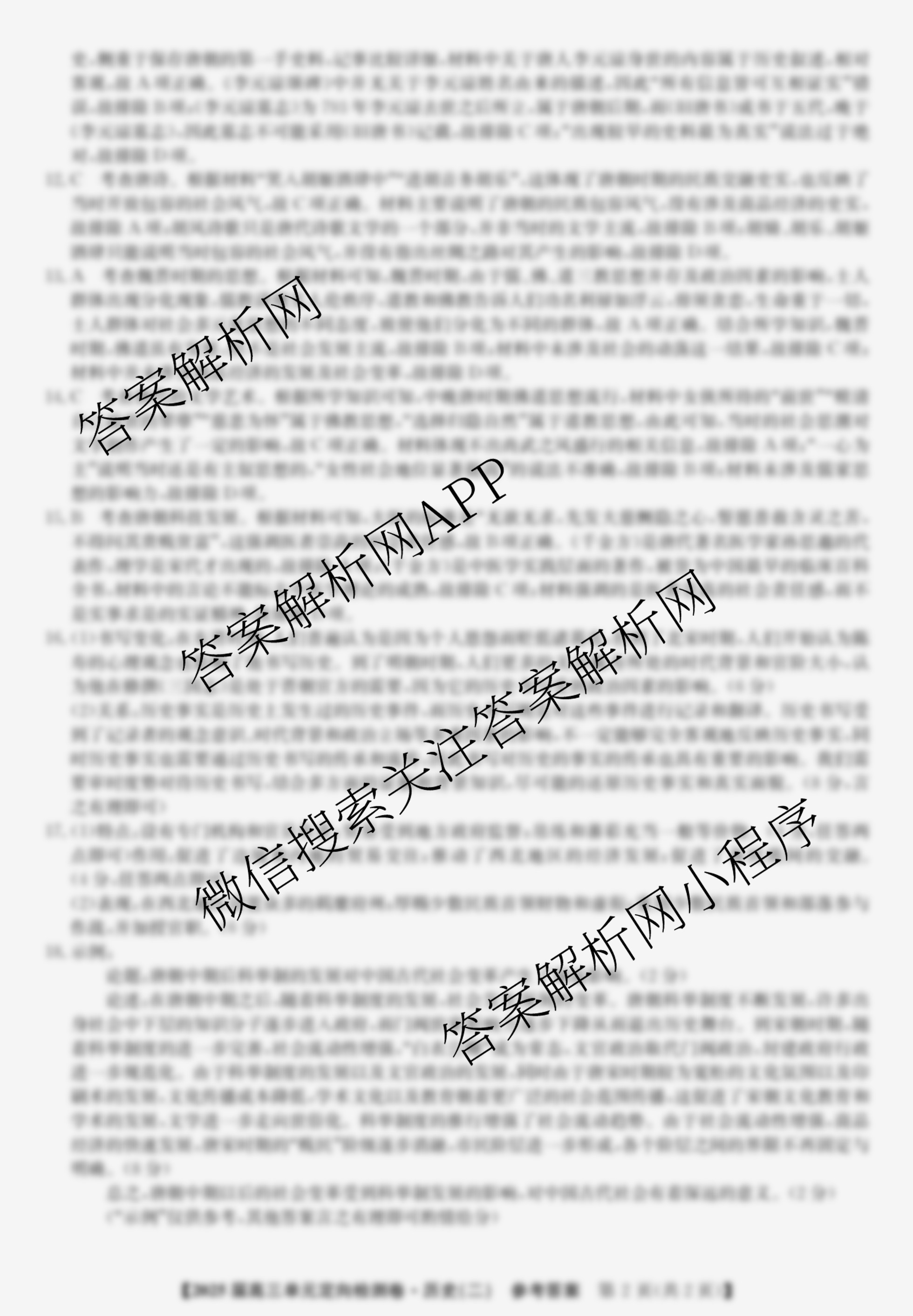 - 2025届[九师联盟]·(高三)单元定向检测卷(二)2历史(KH)答案