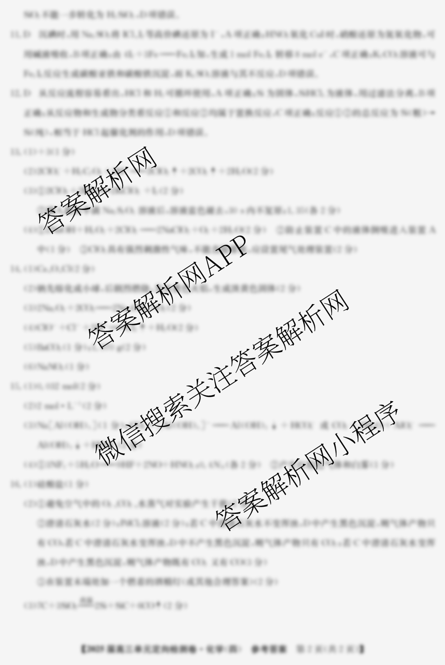 - 2025届[九师联盟][高三]单元定向检测卷(四)4化学(KH)答案