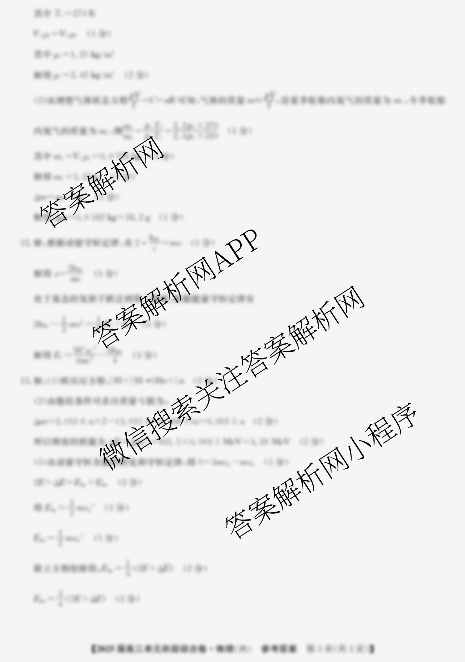 - [高三][九师联盟]2025届单元阶段综合卷(六)6物理答案