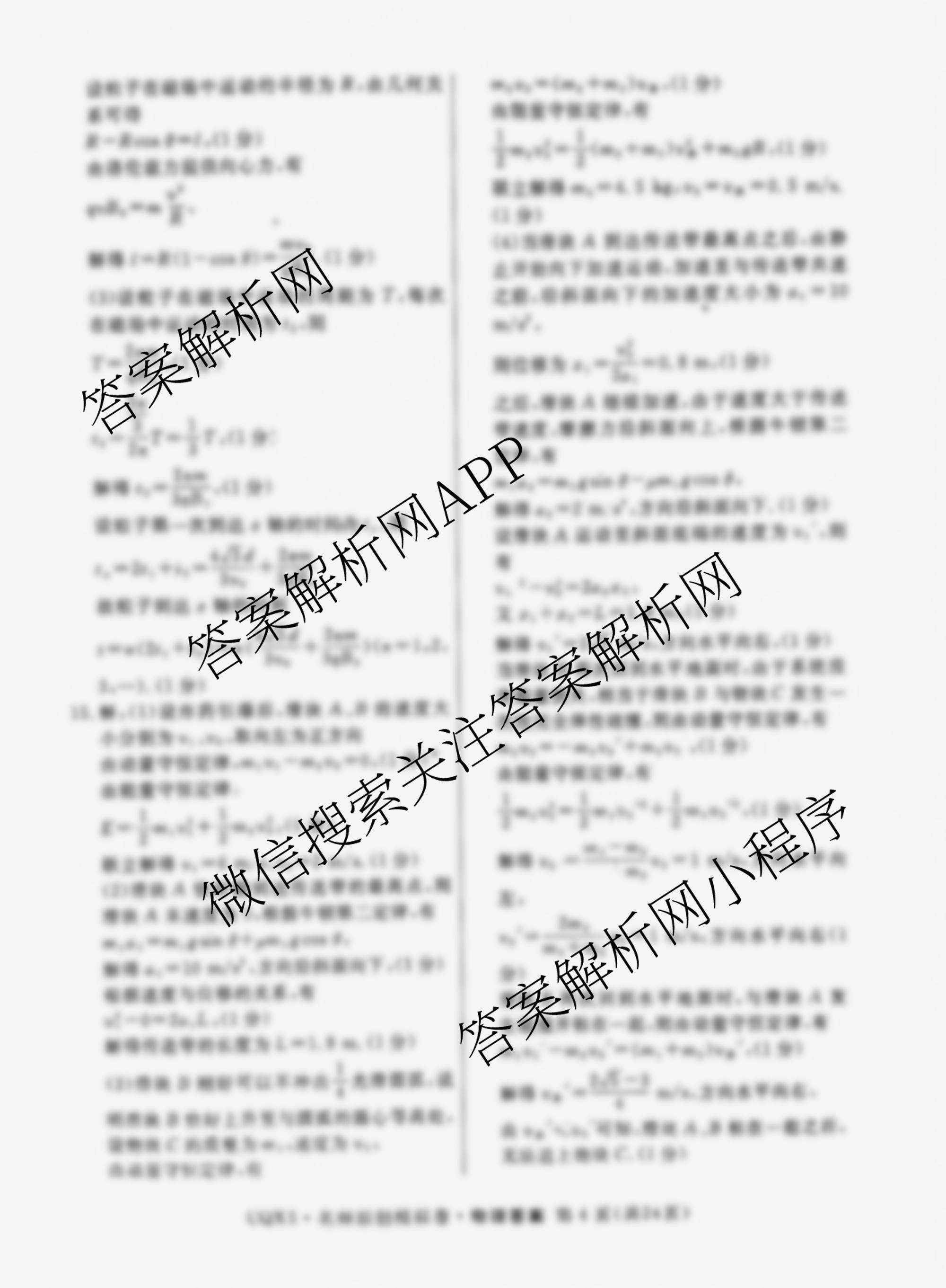 - 2025届(高三)总复习名师原创模拟 物理(CQX5)(一)1答案