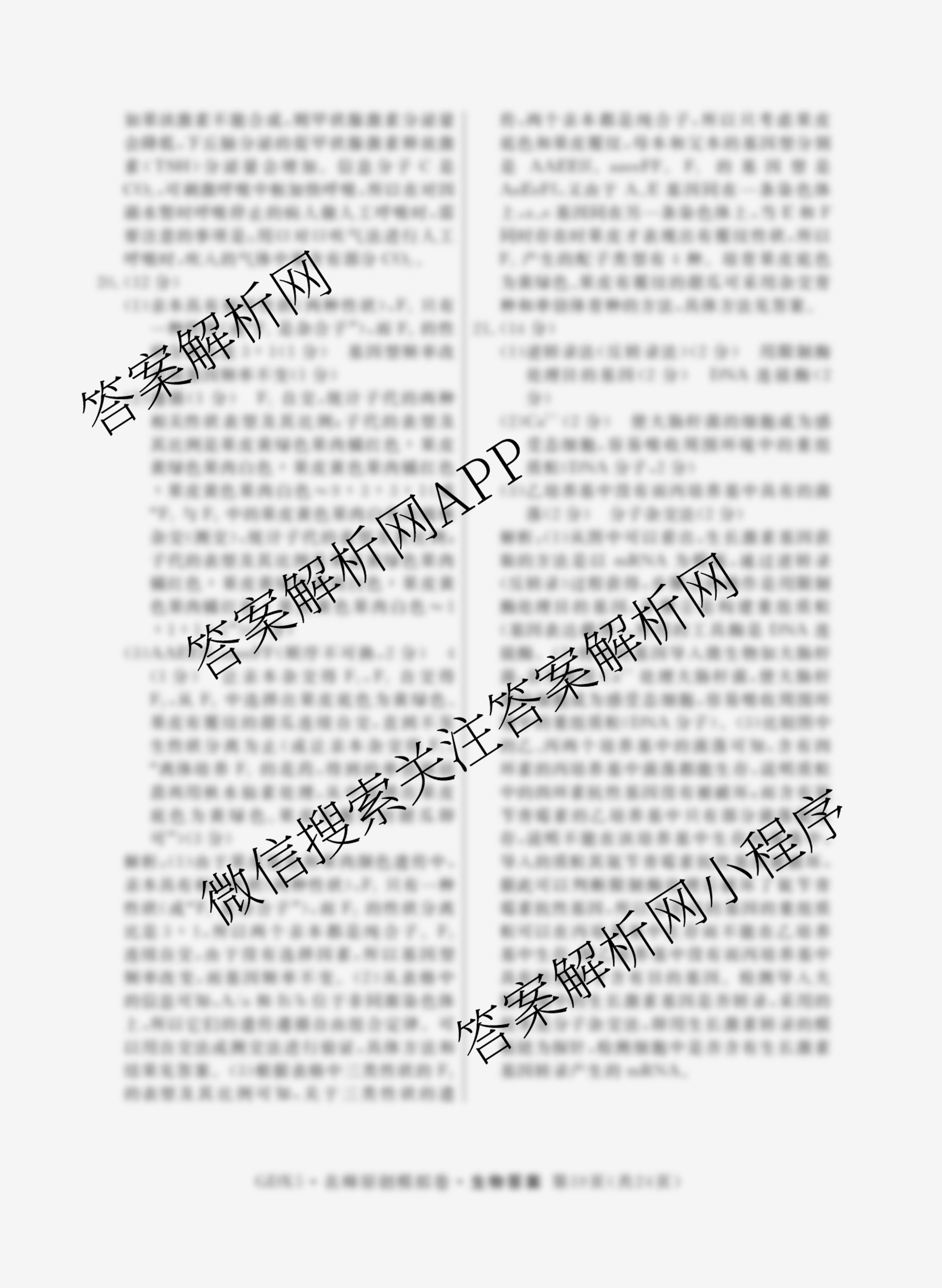 - (高三)2025届(总复习名师原创模拟) 生物(GDX5)(五)5答案