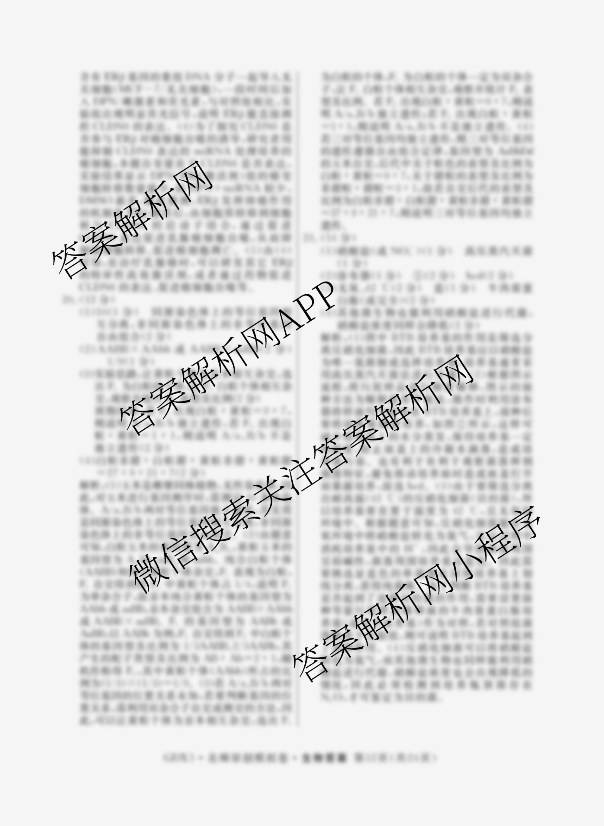 - 2025届((高三)总复习名师原创模拟)(三)3生物(XS5)答案