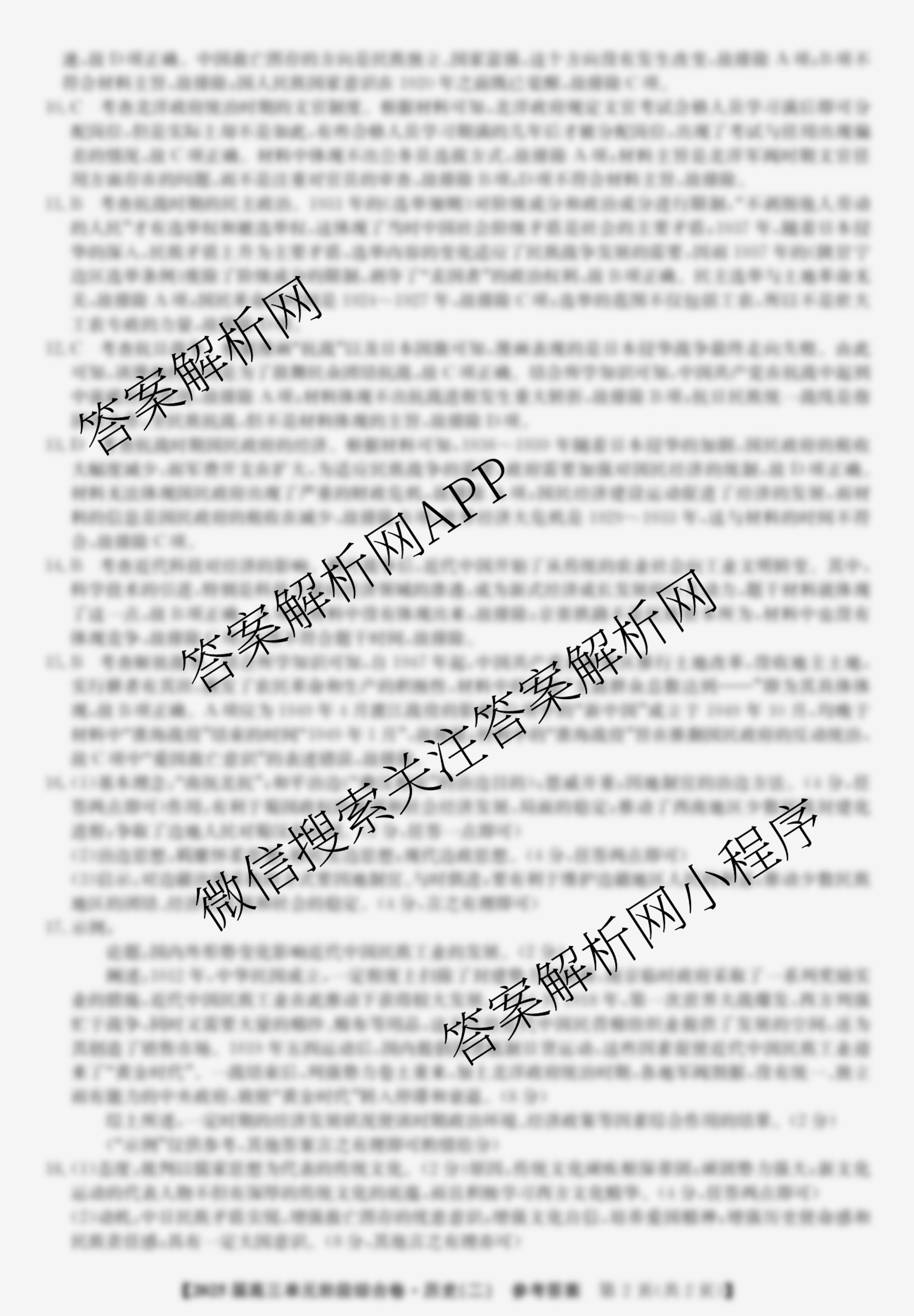 - [高三][九师联盟]·2025届单元阶段综合卷(二)2历史答案