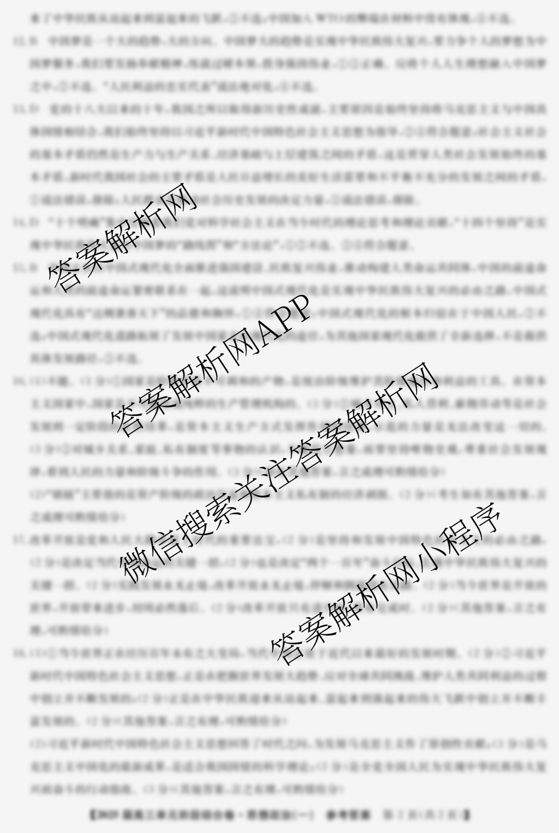 [高三][九师联盟]2025届单元阶段综合卷(一)1政治答案