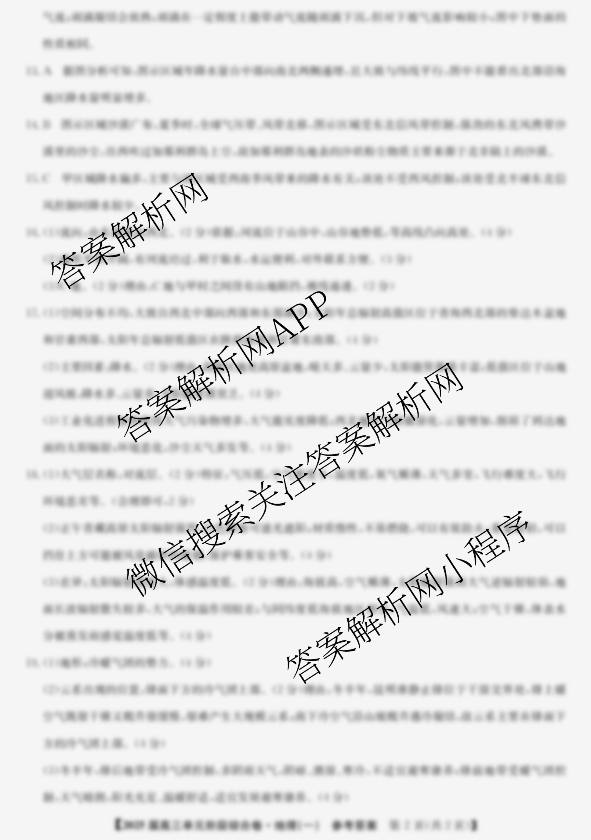 - (九师联盟)2025届(高三)单元阶段综合卷(一)1地理答案
