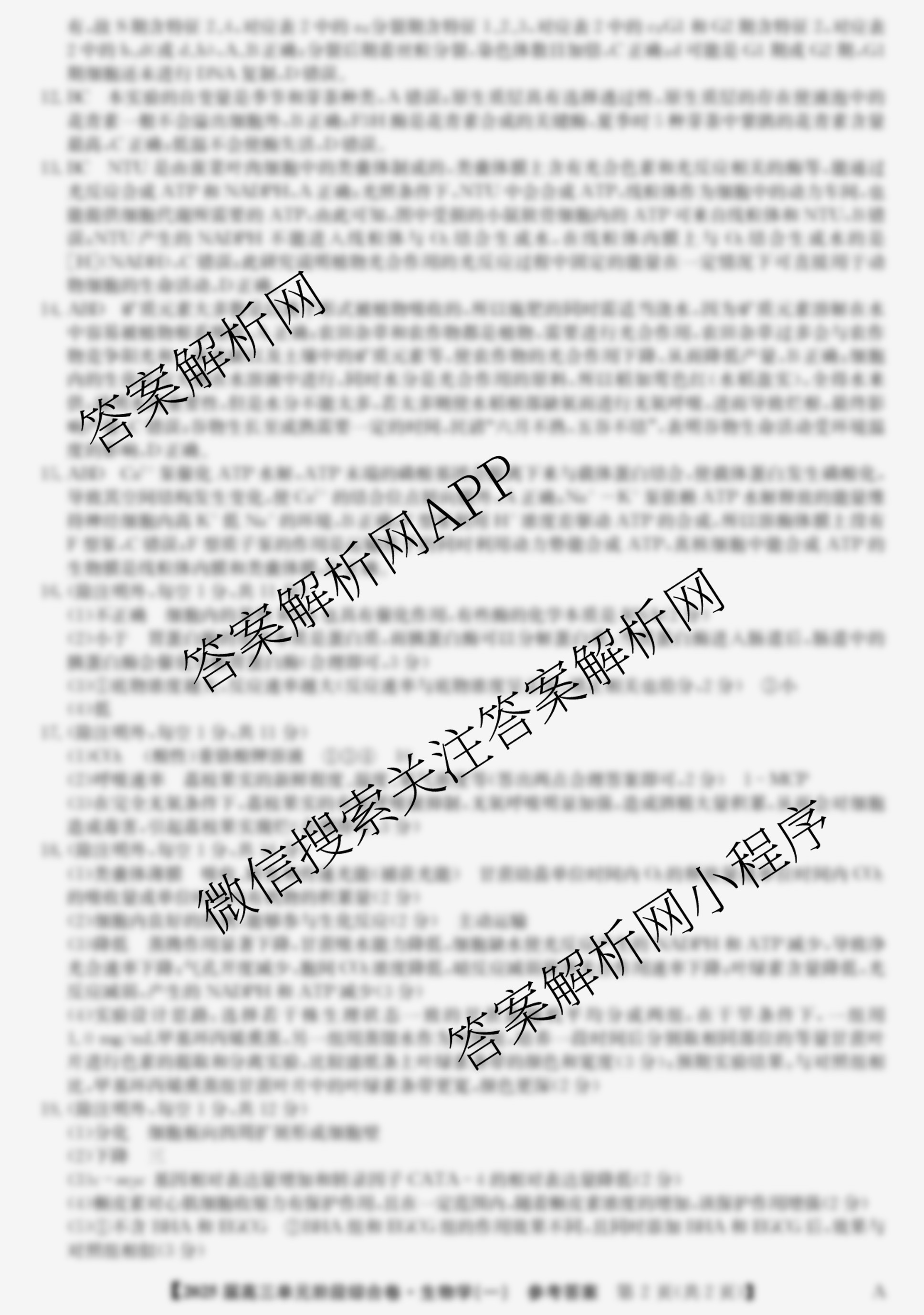- [高三][九师联盟]·2025届单元阶段综合卷(一)1生物答案