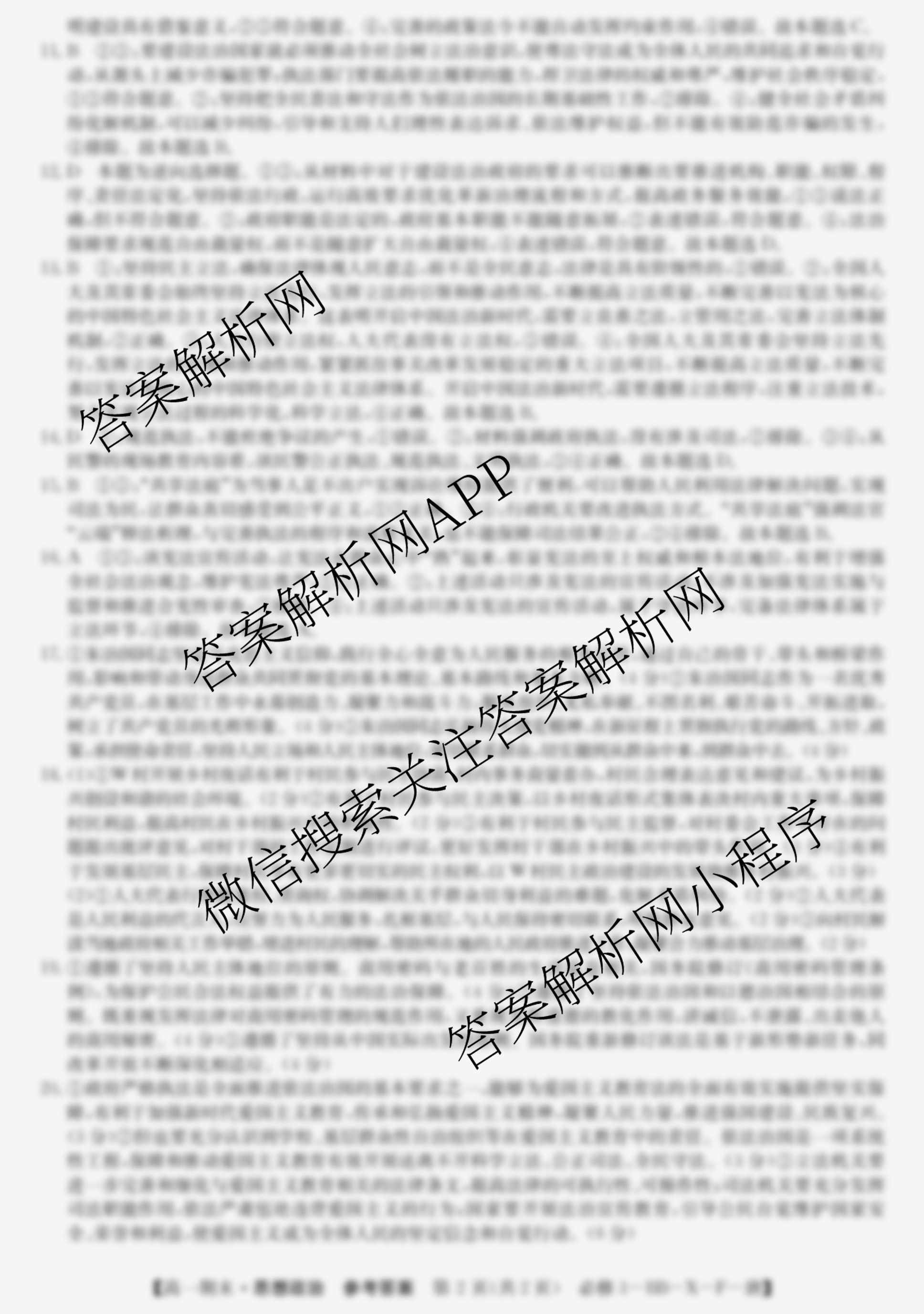 - [高一]2023~2024全国名校第二学期期末考试政治(必修3-BB-X-F-唐)答案