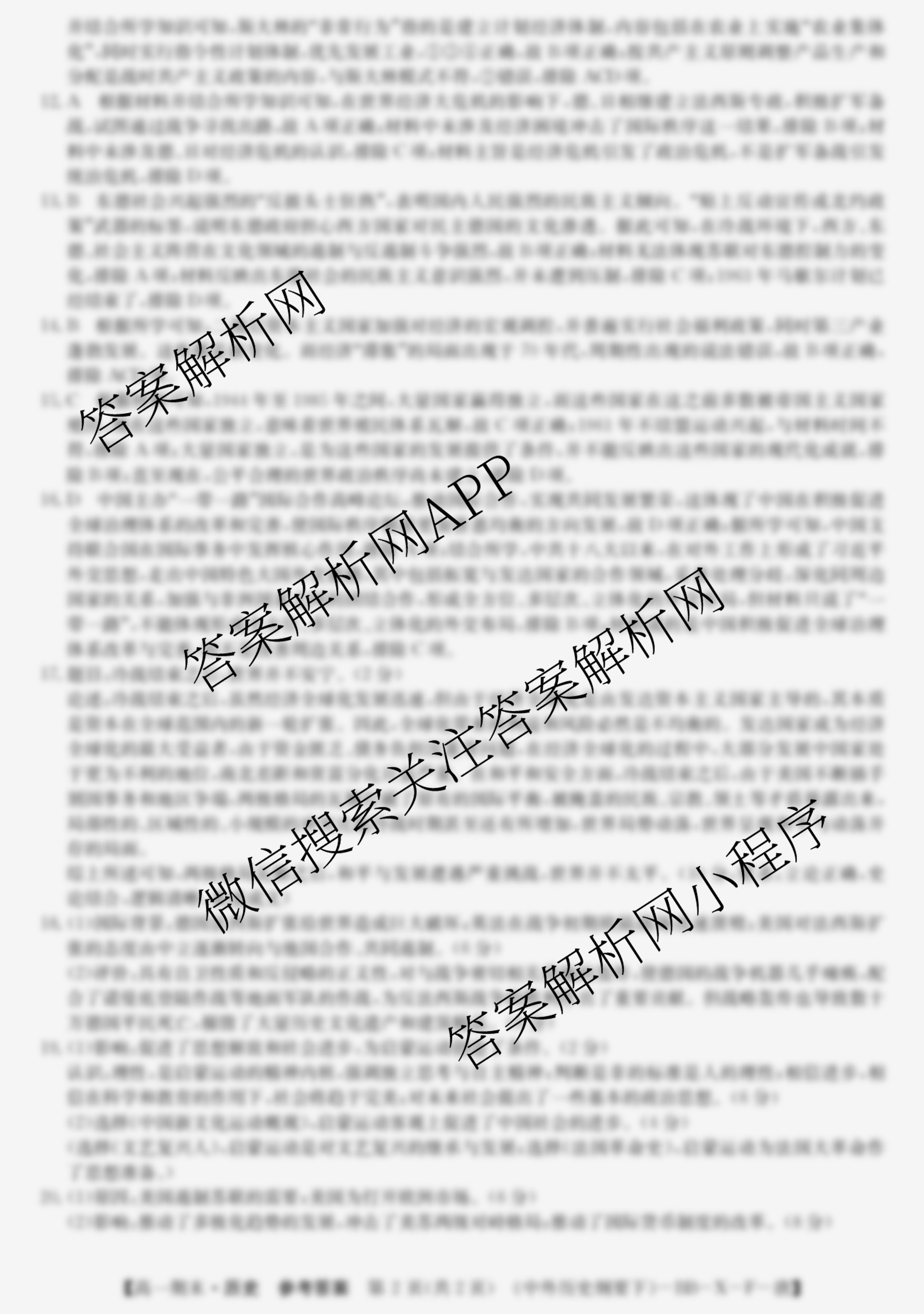 2023~2024(高一)全国名校第二学期期末考试历史(中外历史纲要下-BB-X-F-唐)答案