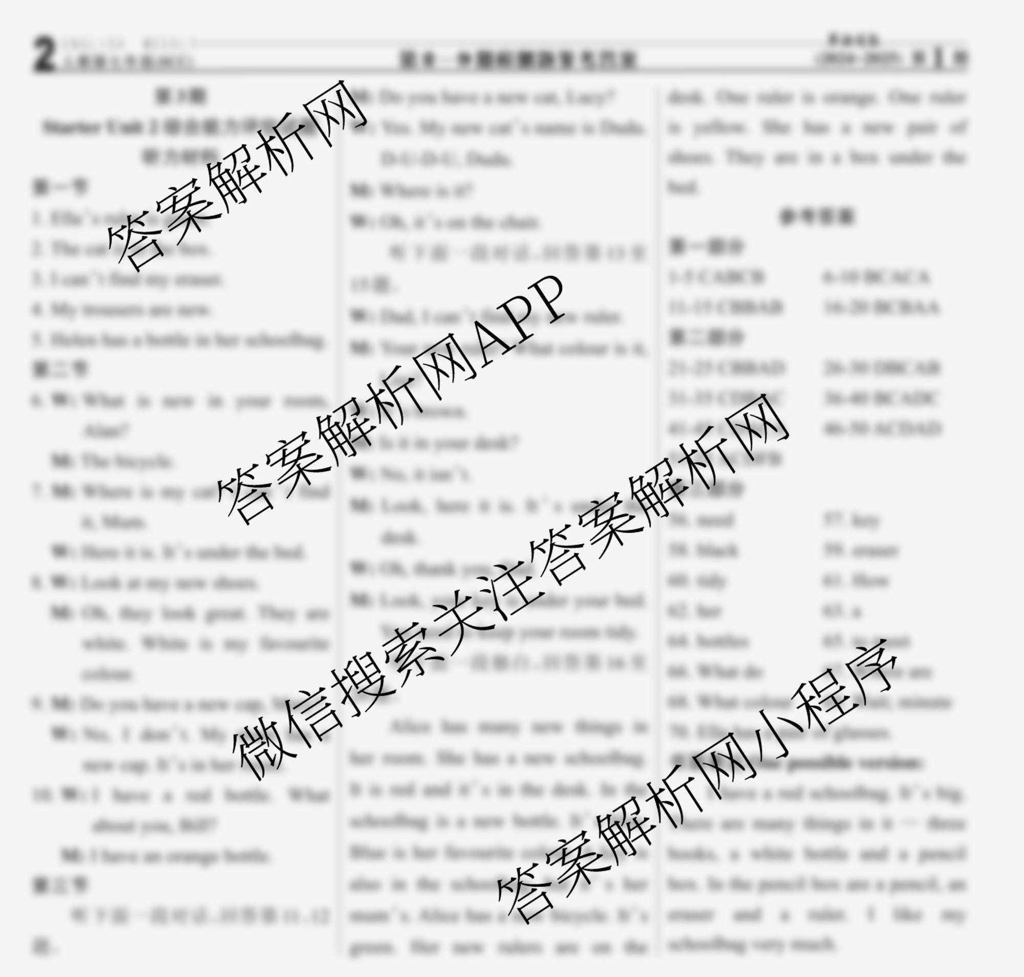 2024-2025 英语周报 七年级 新目标(SCC)第3期答案