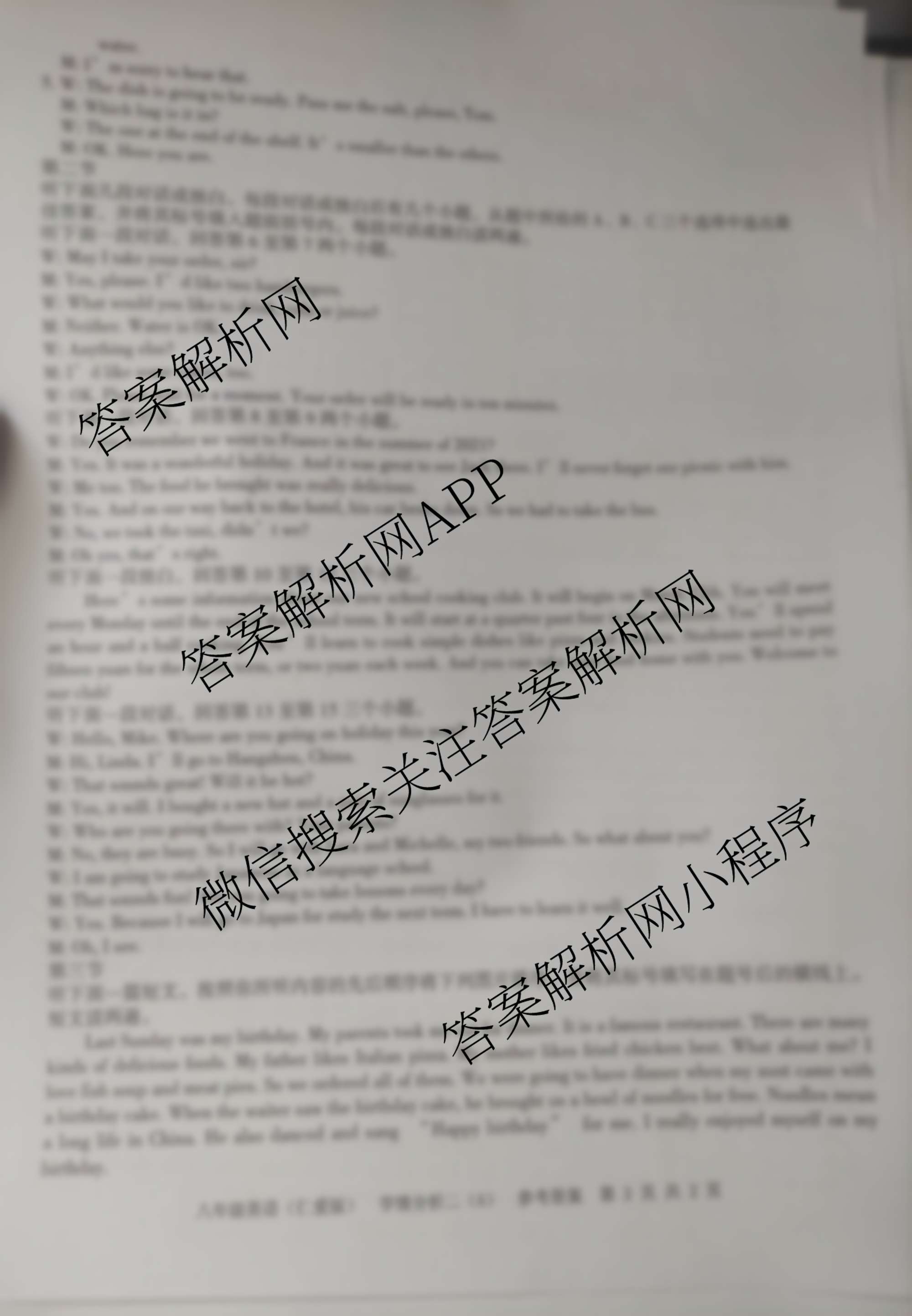 - (八年级)河南省2023~2024学年第二学期学情分析二英语答案
