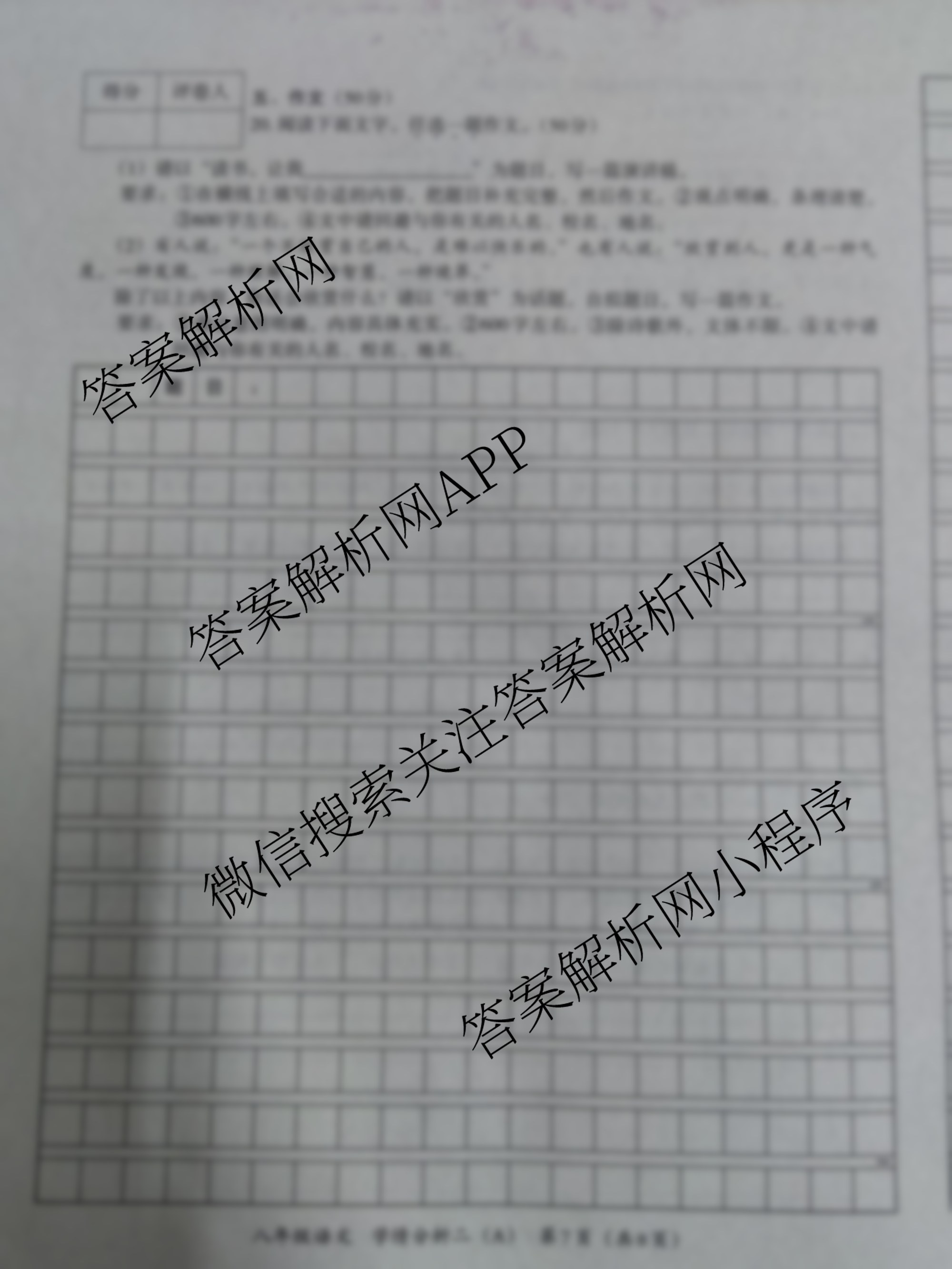 - 2023-2024河南省学年度(八年级)第二学期第二次学情分析(二)语文(A统编版)答案