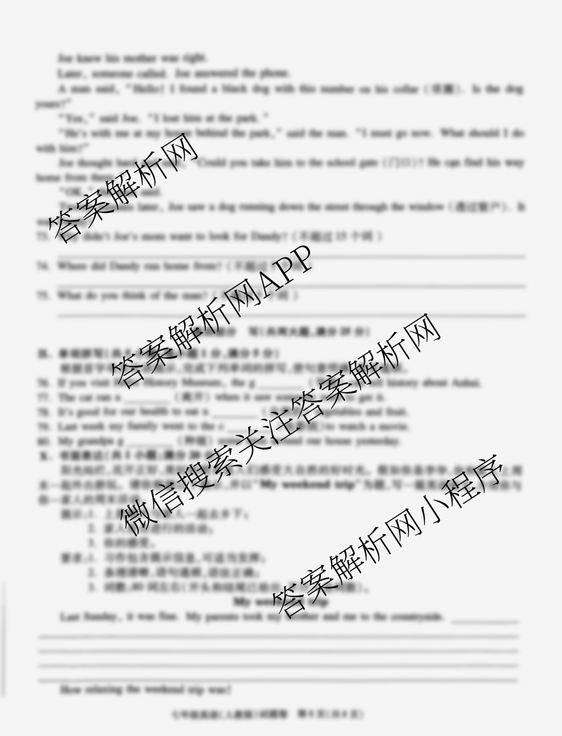 安徽省2023-2024学年七年级下学期期末教学质量调研英语(人教版)试题,目前学英语报答案已经汇总了安徽省2023-2024学年七年级下学期期末教学质量调研英语(人教版)试题的各科答案和试卷,获取更多安徽省教学质量调研答案解析,请在关注本站。