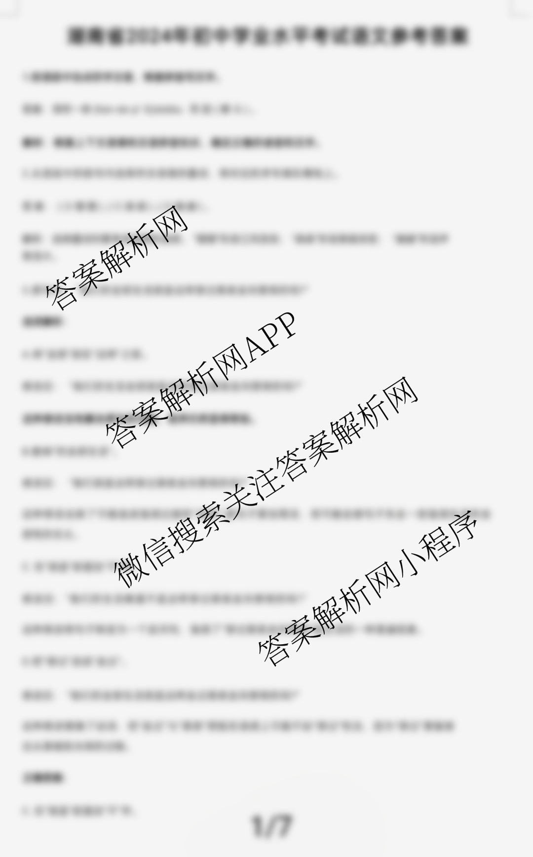 - 2024届湖南省九年级[中考真题]语文答案