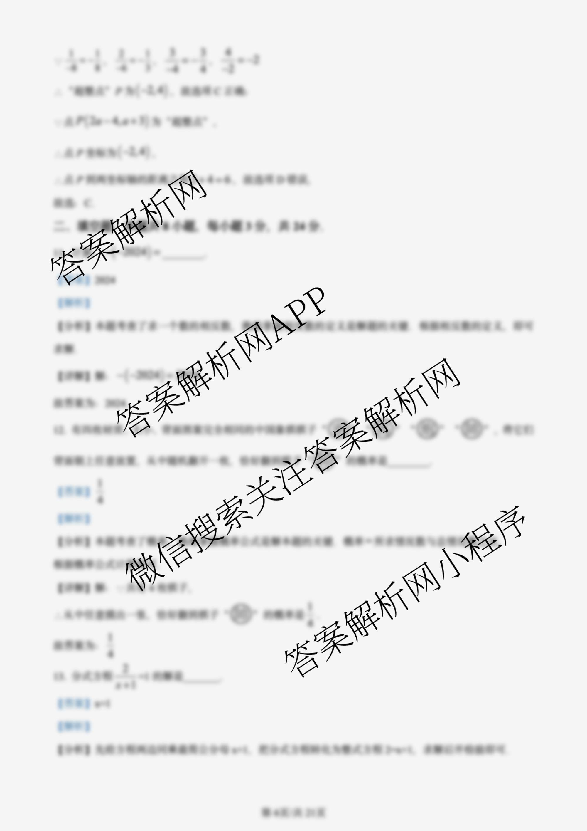 - 湖南省2024届九年级中考真题数学答案