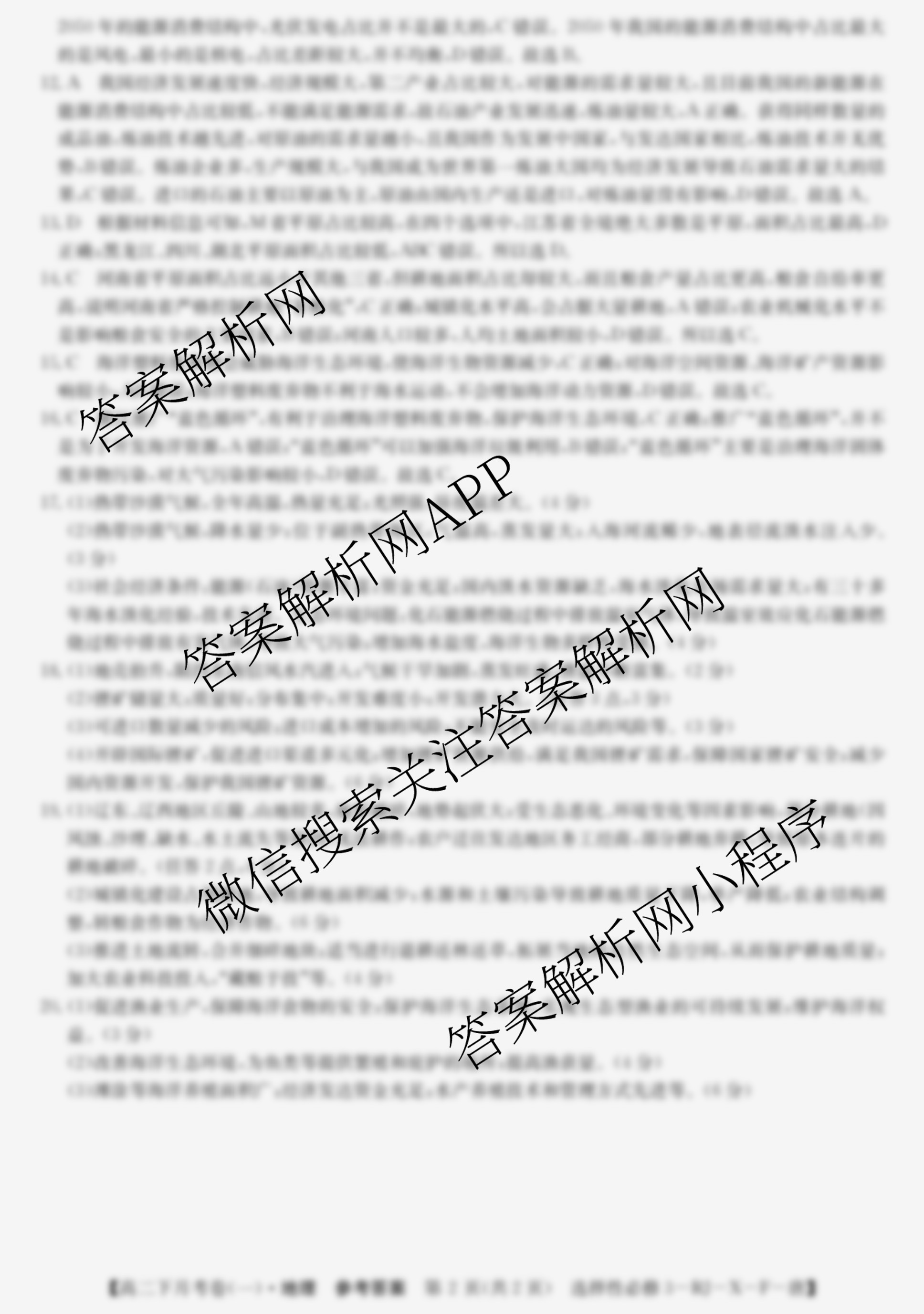 - [高二]2023~2024全国名校下学期第一次月考试卷地理(选择性必修3-RJ-X-F-唐)答案