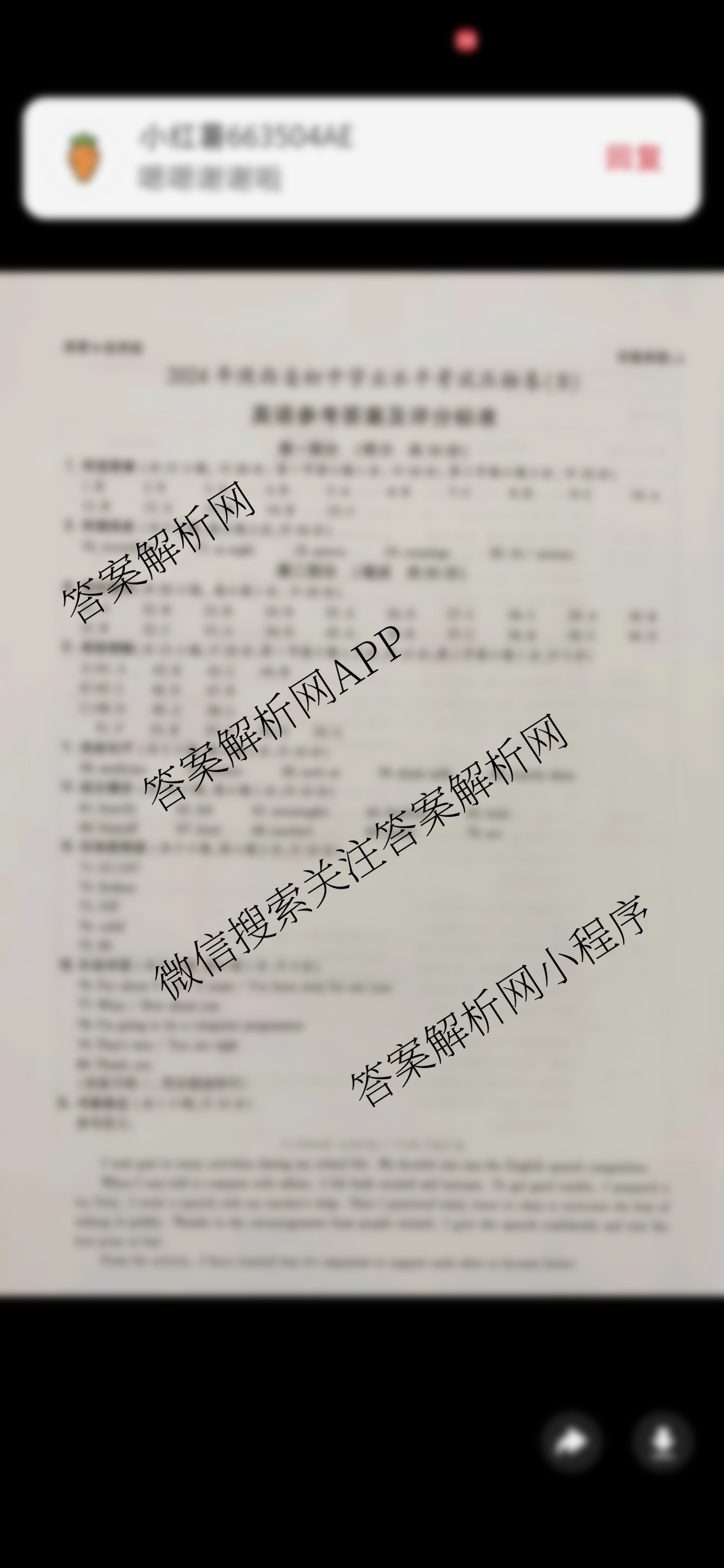 - [九年级]益卷·2024年陕西省初中学业水平考试压轴卷英语(A)答案
