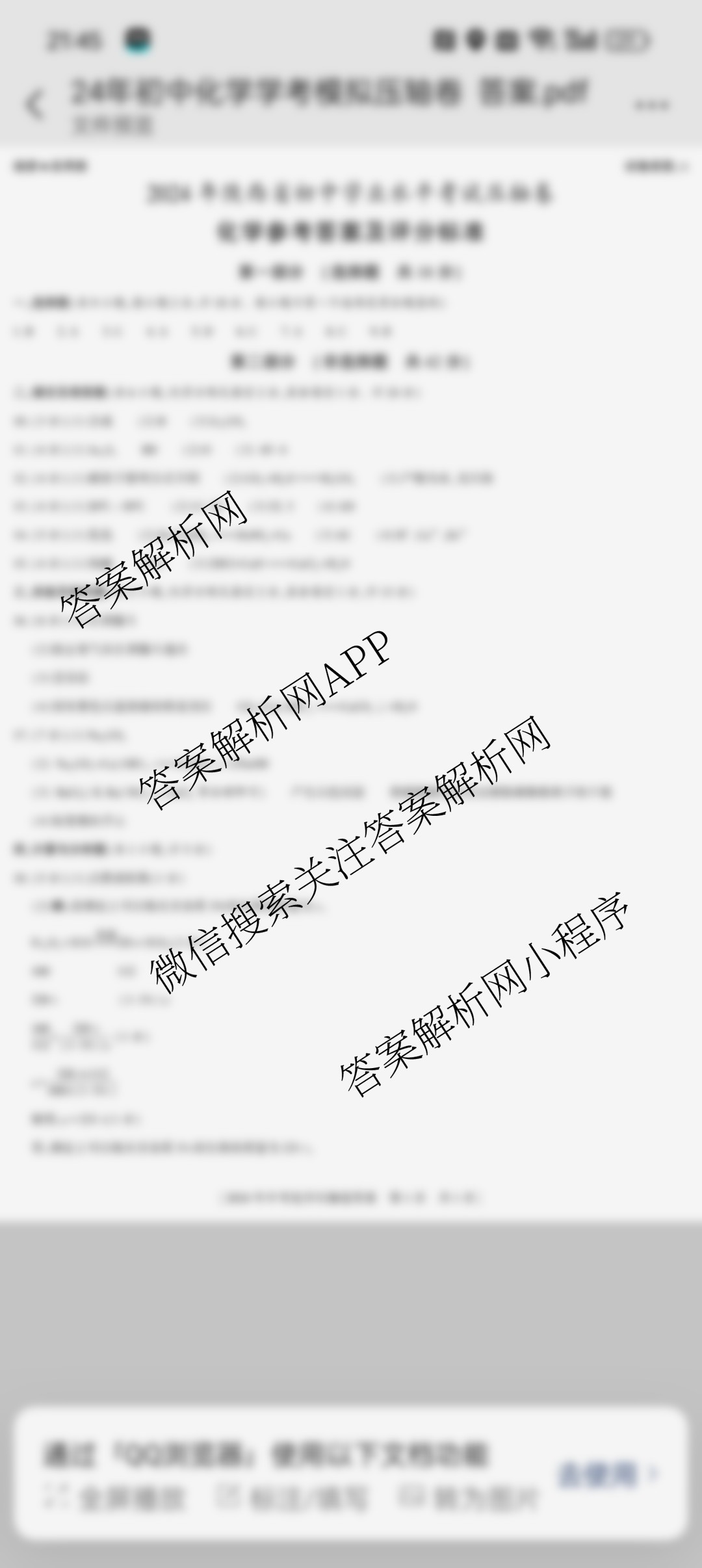 - [九年级]益卷·2024年陕西省初中学业水平考试压轴卷化学(A)试题