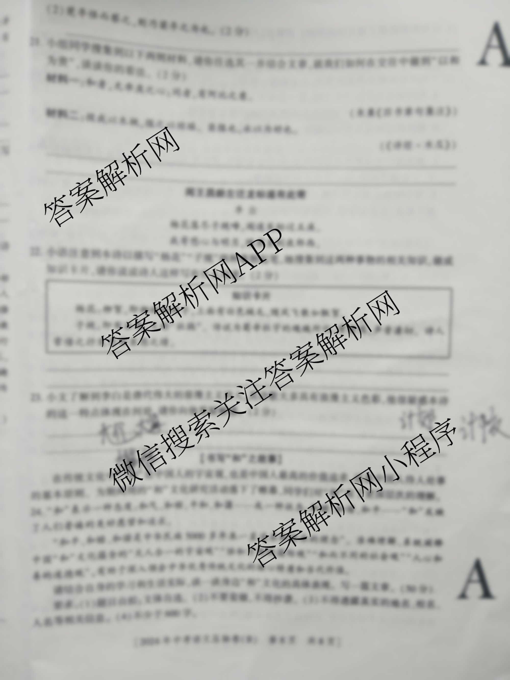 - [益卷]2024年陕西省初中学业水平考试压轴卷语文(A)答案