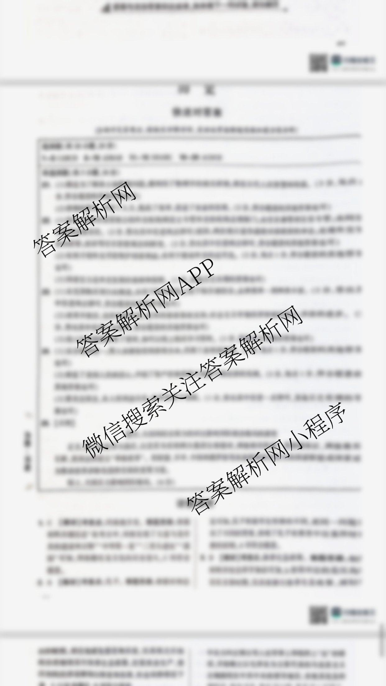 - (九年级)2024年河南省普通高中招生考试黑白卷 道德与法治(黑卷)答案