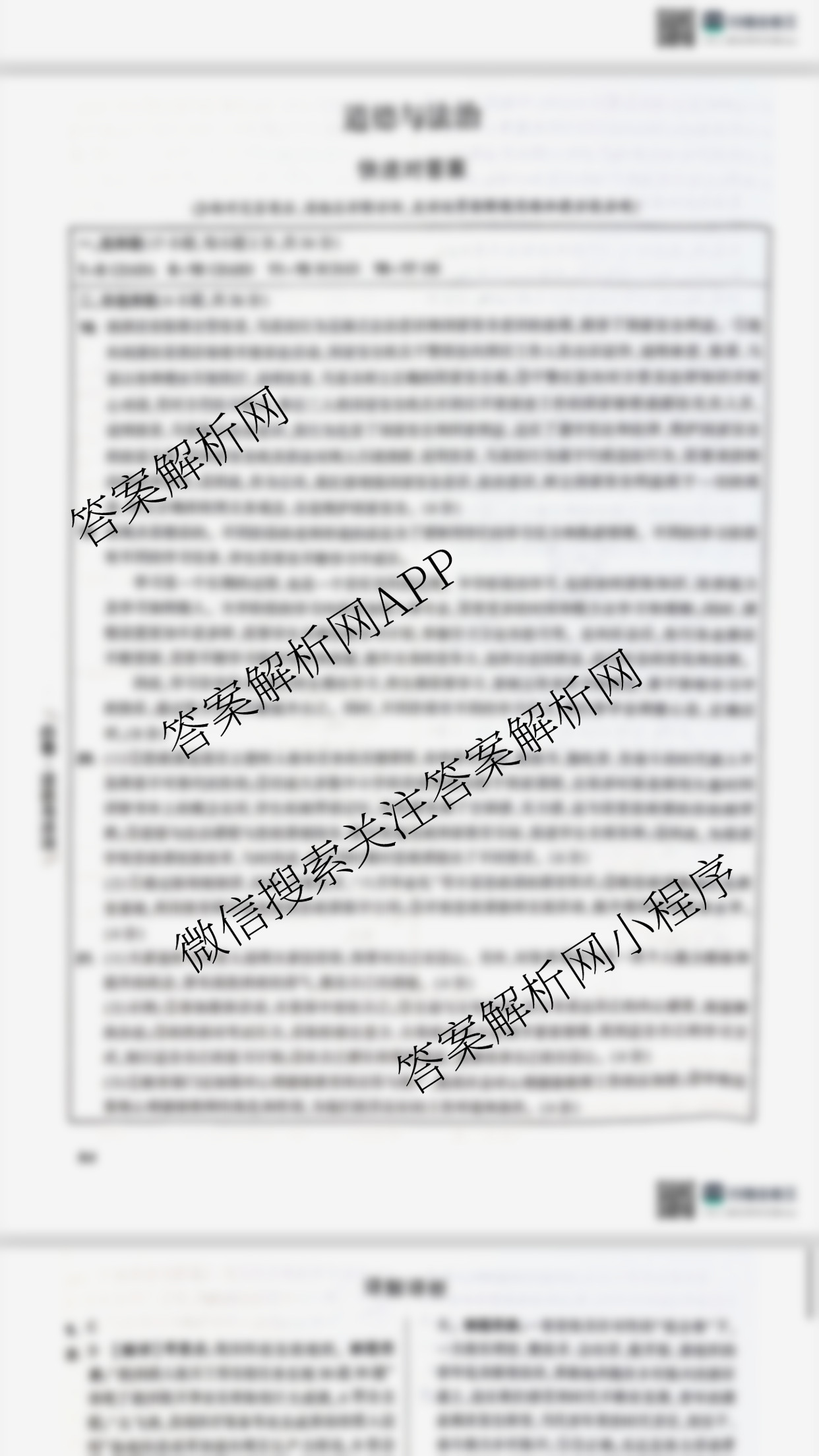 - (九年级)2024年河南省普通高中招生考试黑白卷 道德与法治(黑卷)答案