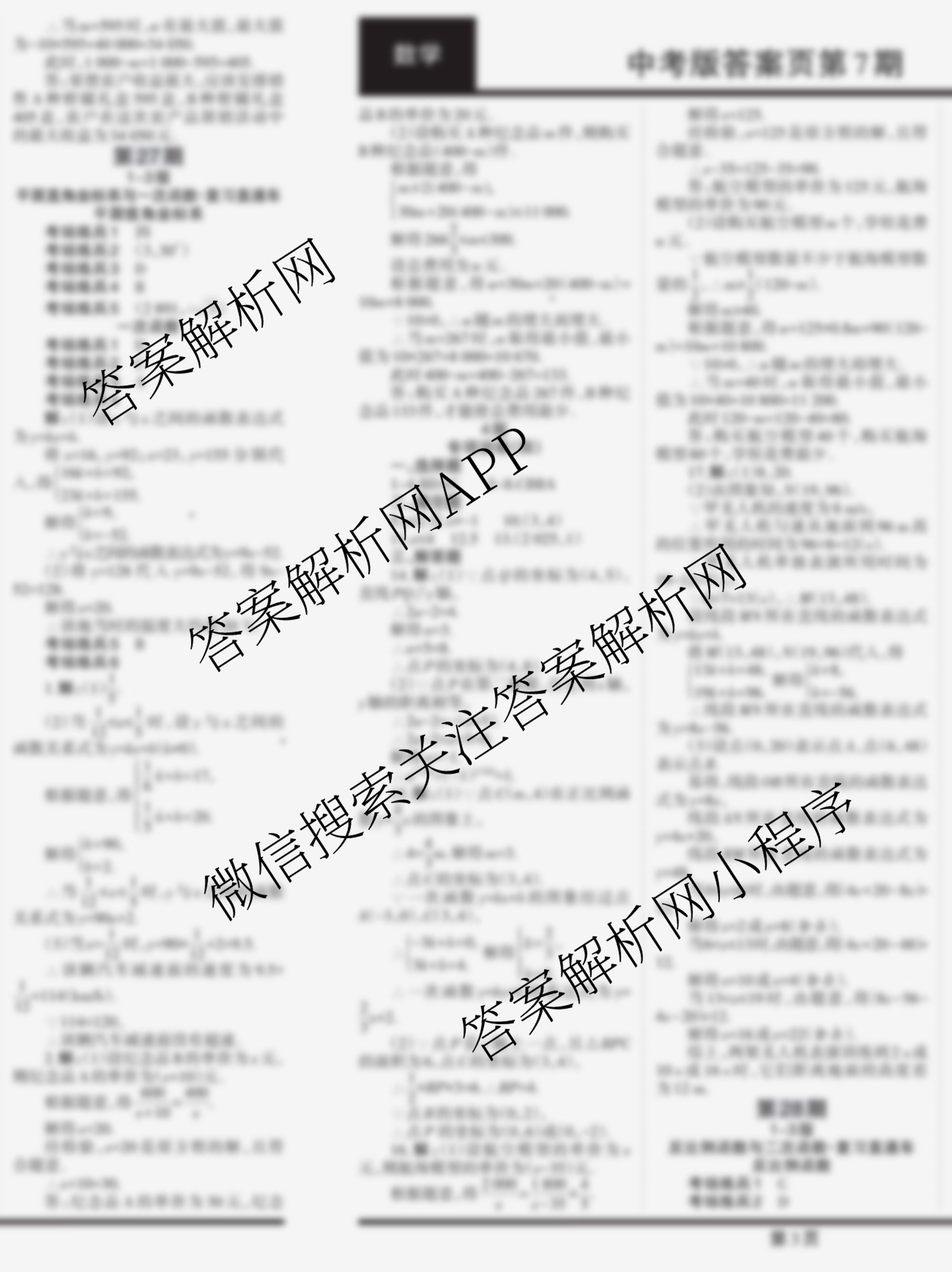 2024-2025 学习周报 数学 中考版(人教)第27期答案