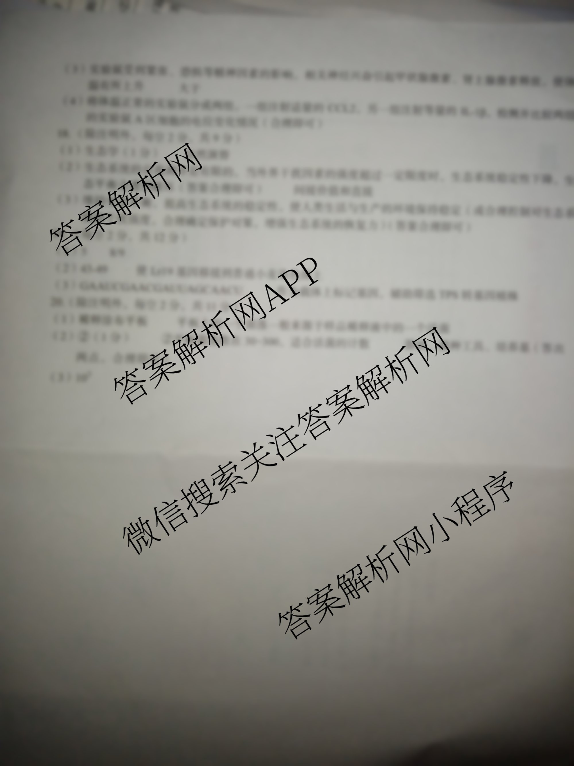 - (1号卷)A10联盟2024年高考原创夺冠卷(二)2生物(JX)答案