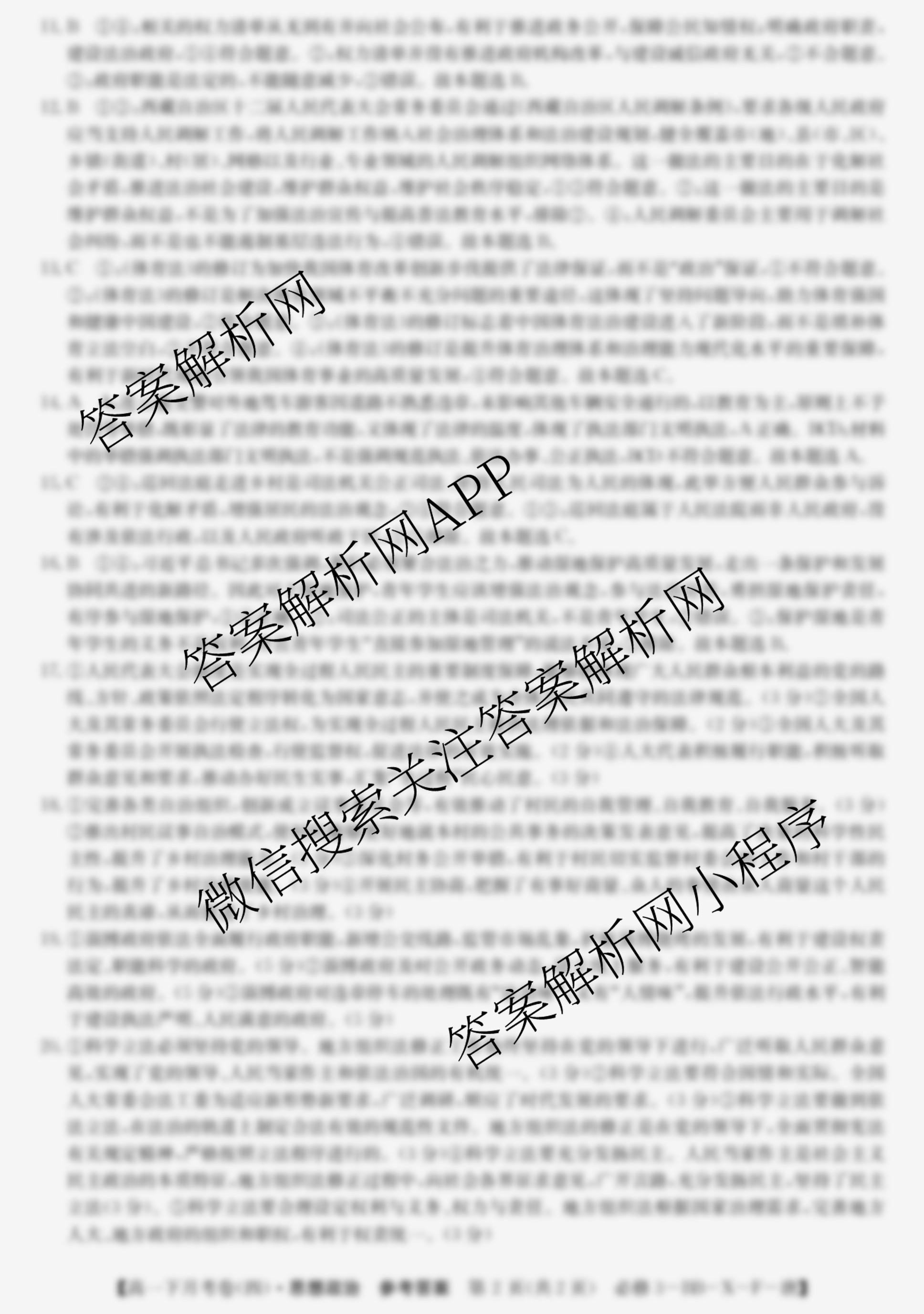 - (高一)2023~2024全国名校下学期第四次月考试卷政治(必修3-BB-X-F-唐)答案