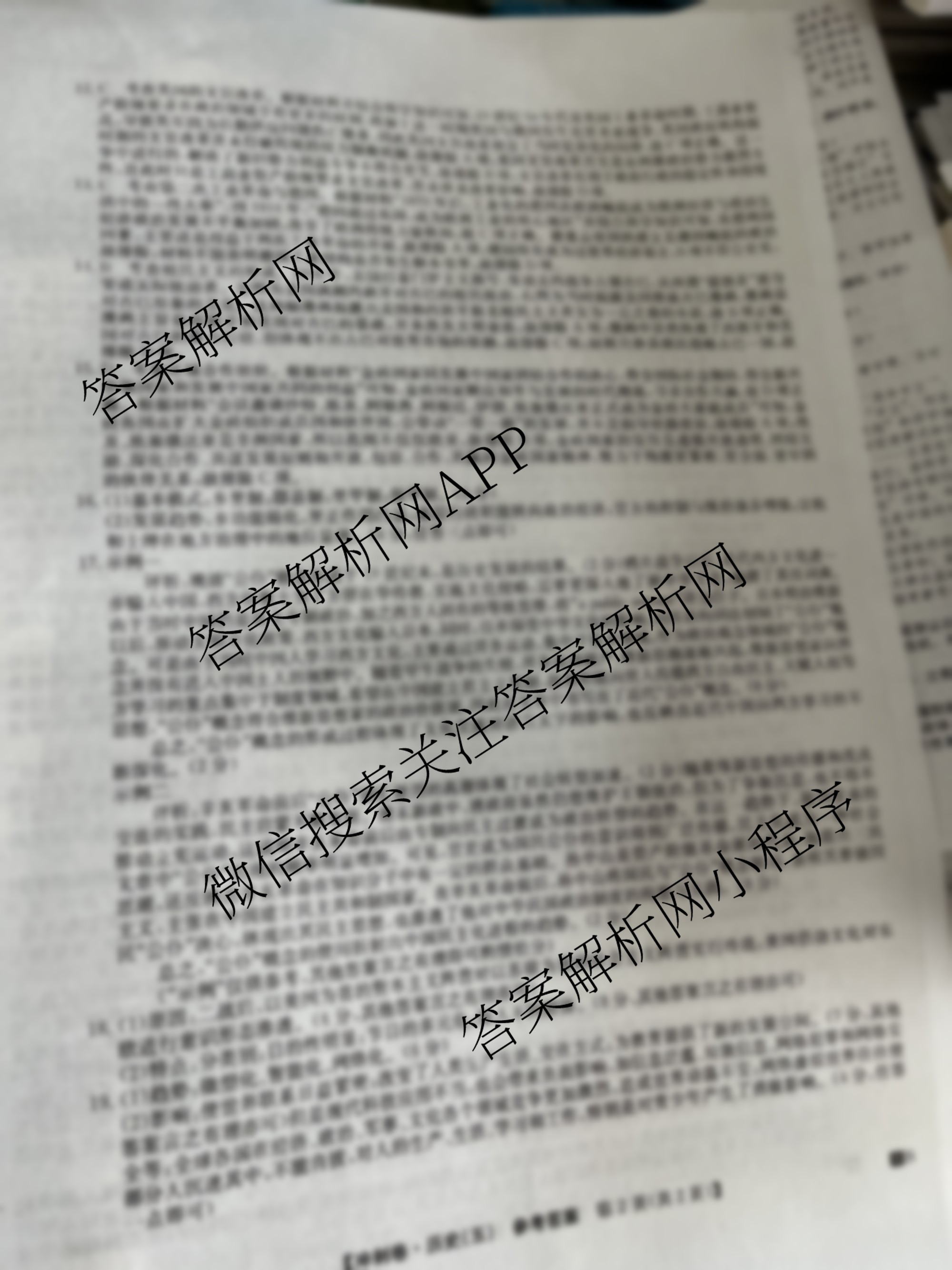 2024年山东省普通高中学业水平等级考试冲刺压轴卷(五)5历史(山东)答案